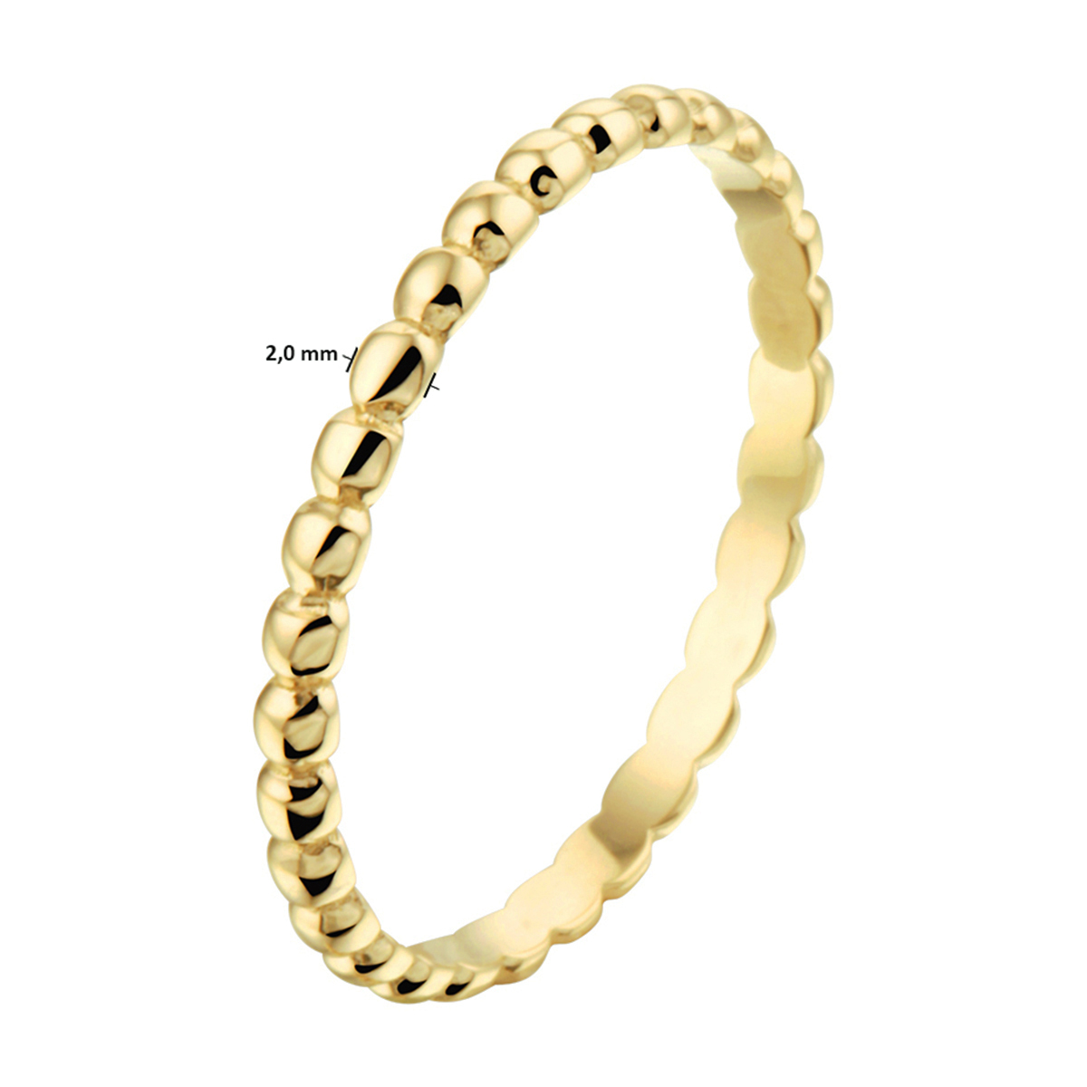 14k Geelgouden aanschuifring uitgevoerd met platte bolletjes. De ring heeft een breedte van 2mm.