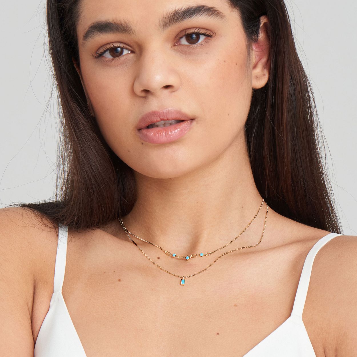 Deze 14K gold plated Turquoise Link Necklace uit de Into the Blue-collectie van Ania Haie is de perfecte balans tussen klassiek en speels. De ketting voegt een vleugje blauw toe aan je look en is gecombineerd met drie turkoois stenen die zijn verbonden met dikke schakels. Voeg toe aan een gelaagde look voor een vleugje levendigheid.