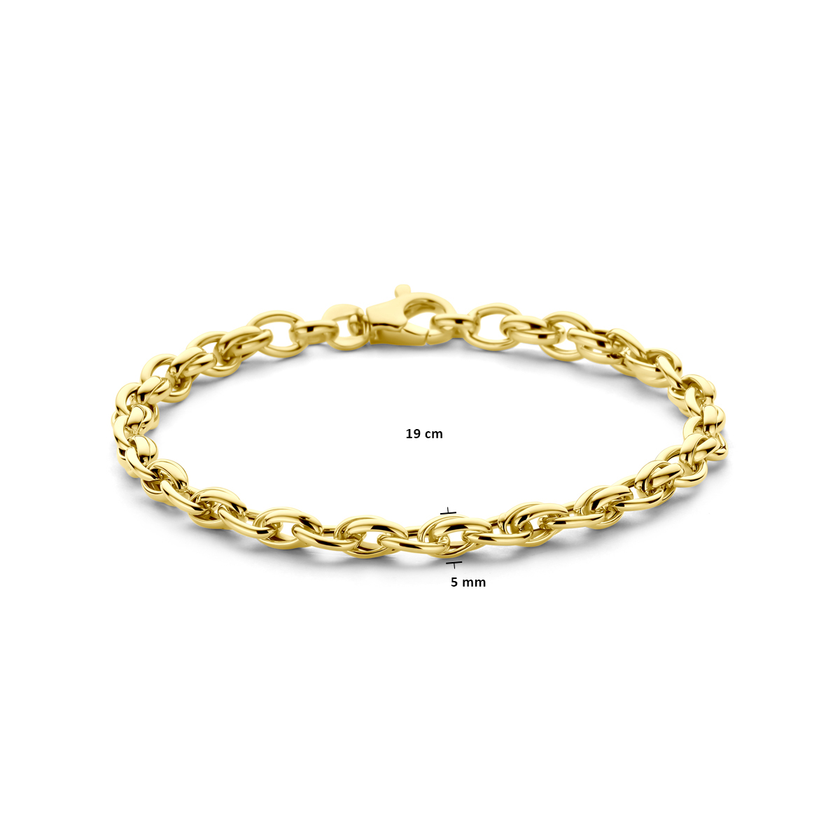 14k Geelgouden armband. De armband heeft een draaglengte van 19cm en een schakelbreedte van 5.0mm. Uitgevoerd met een karabijnsluiting.