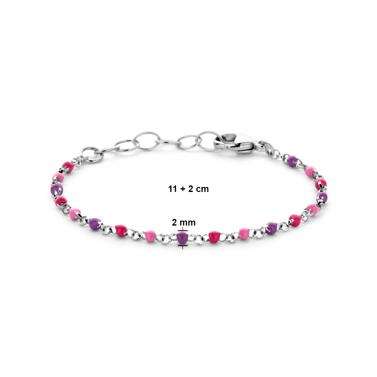 Gerhodineerd 925 zilveren armband uitgevoerd met emaille bolletjes. De armband heeft een draaglengte van 11cm en een extensie van 2cm. Uitgevoerd met karabijnsluiting.  De schakelbreedte is 1.7mm.