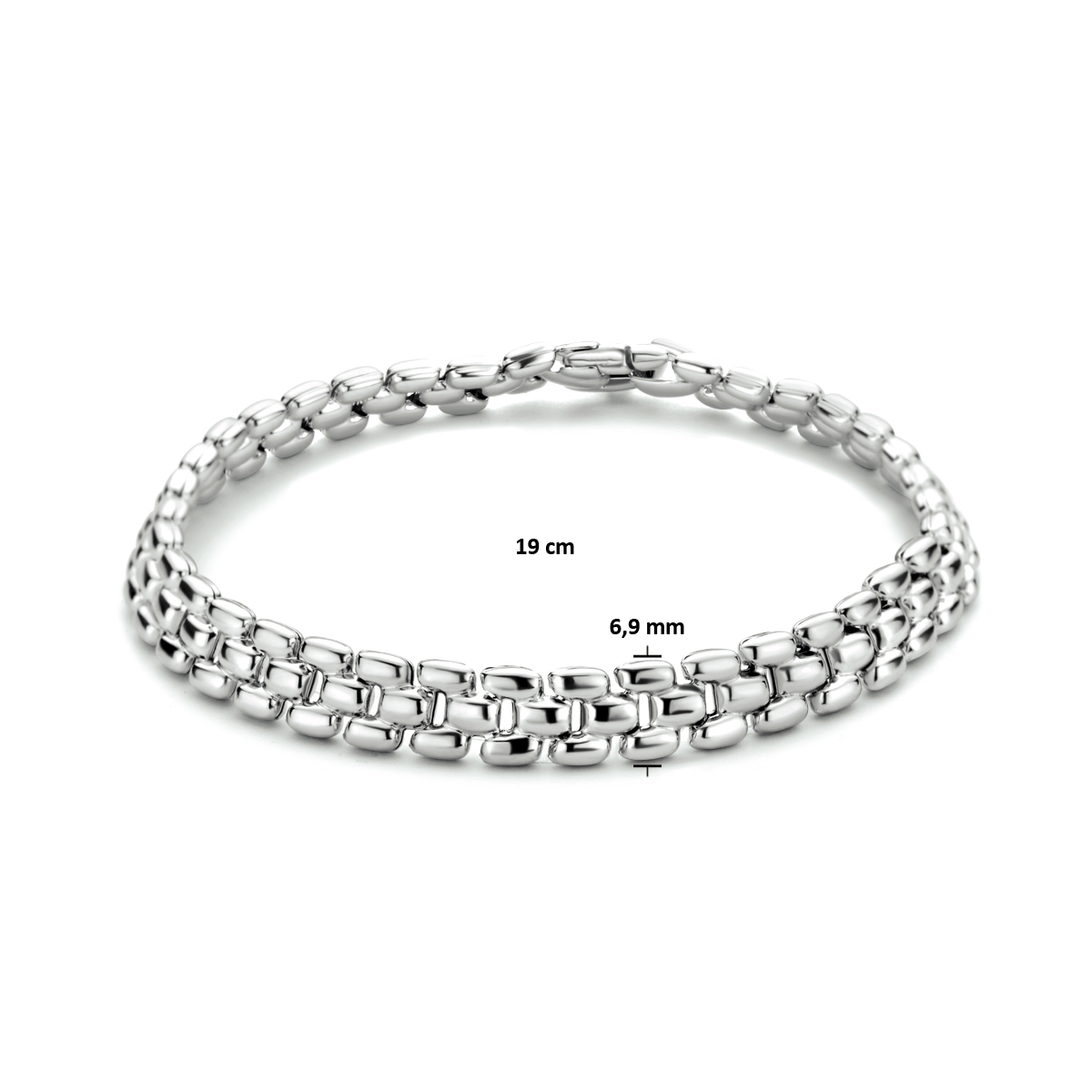 Gerhodineerd 925 zilveren schakelarmband met een breedte van 6.9mm. De armband heeft een draaglengte van 19cm.