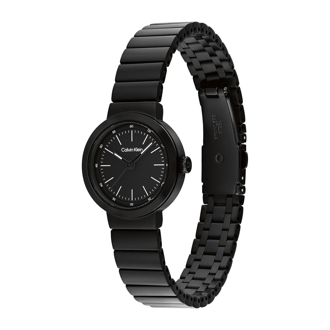 Dit Calvin Klein dameshorloge met nr CK25200407 is een tijdloos ontwerp. De fijne ronde zwarte stalen kast heeft een gladde bezel. Op de zwarte matte sunray wijzerplaat is de tijdsaanduiding op een minimalistische manier verwerkt. De zwarte schakelband is op een strakke wijze aangezet. Het sierlijke horloge heeft een mineraalglas, een doorsnee van 25mm en is 3 ATM.