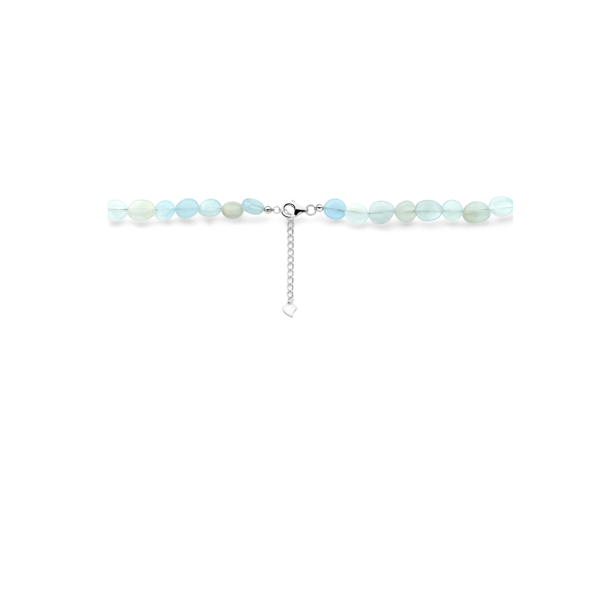 Gerhodineerd 925 zilveren collier uitgevoerd met aquamarijn. Het collier heeft een draaglengte van 40cm met 5cm extensie. Uitgevoerd met karabijnsluiting.