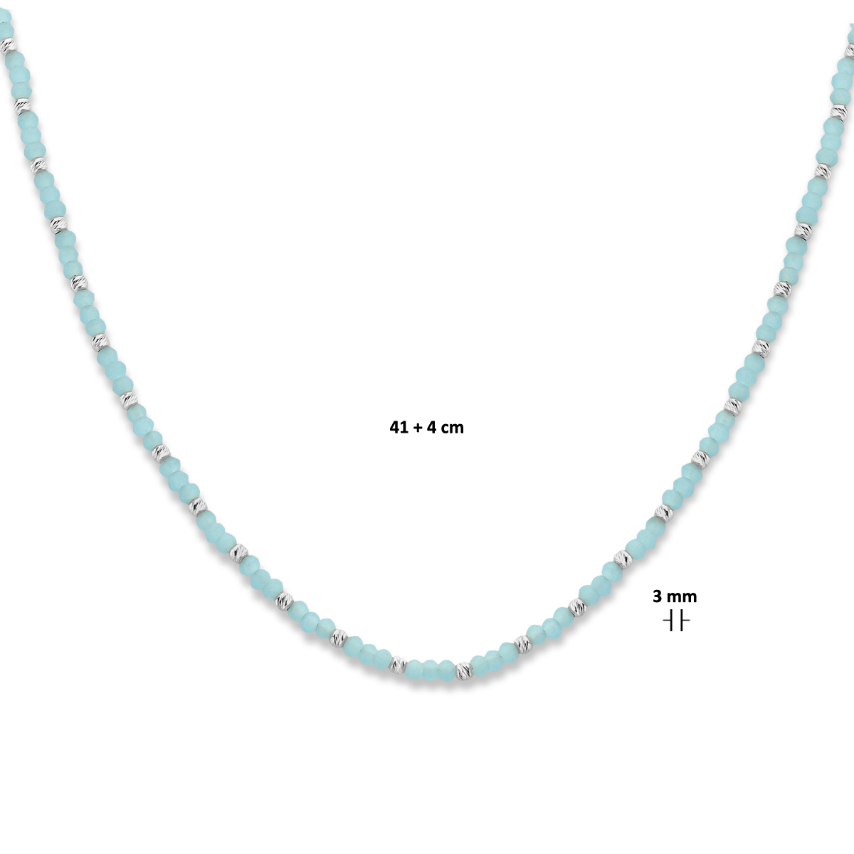 Gerhodineerd 925 zilveren collier uitgevoerd met aquablauw glas en een karabijn sluiting. Het collier heeft een draaglengte van 41cm en een extensie van 4cm.