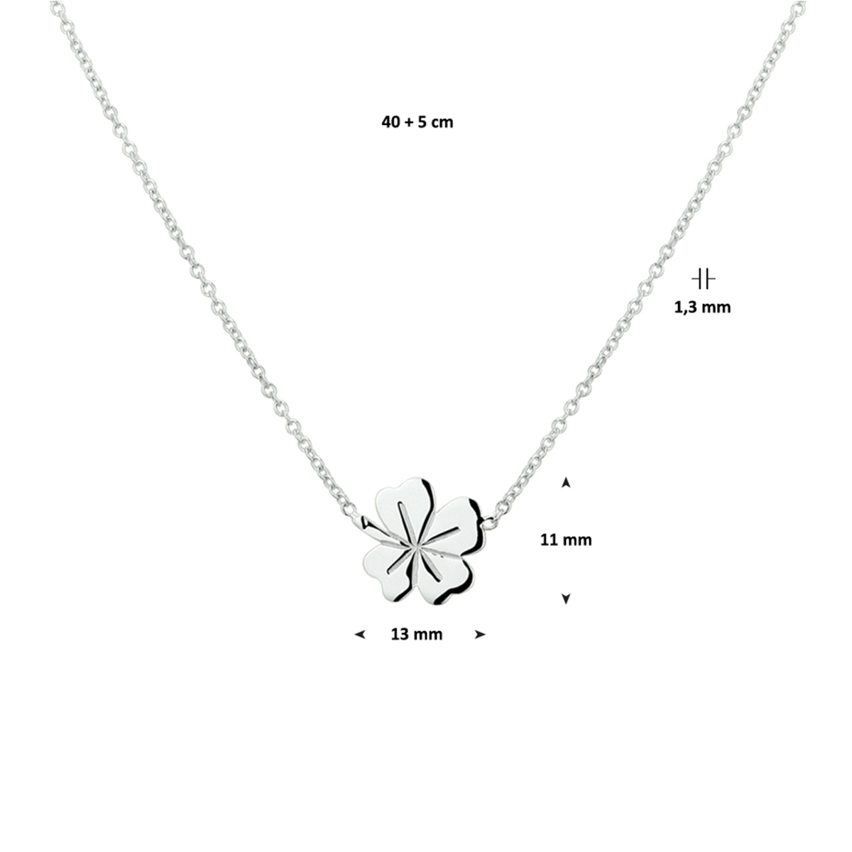Gerhodineerd zilveren collier met een klavertje. De schakelbreedte is 1.3mm.
