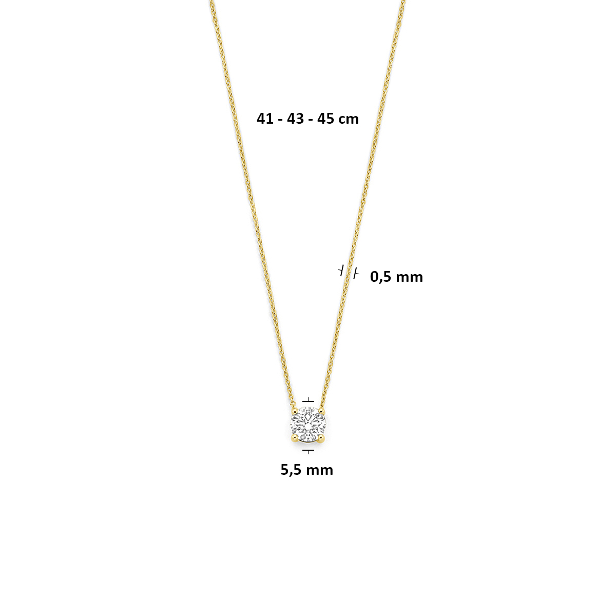 14k Geelgouden collier uitgevoerd met lab grown diamant. Het collier heeft draaglengtes van 41-43-45cm. Het totale diamantgewicht is 0.50ct.
