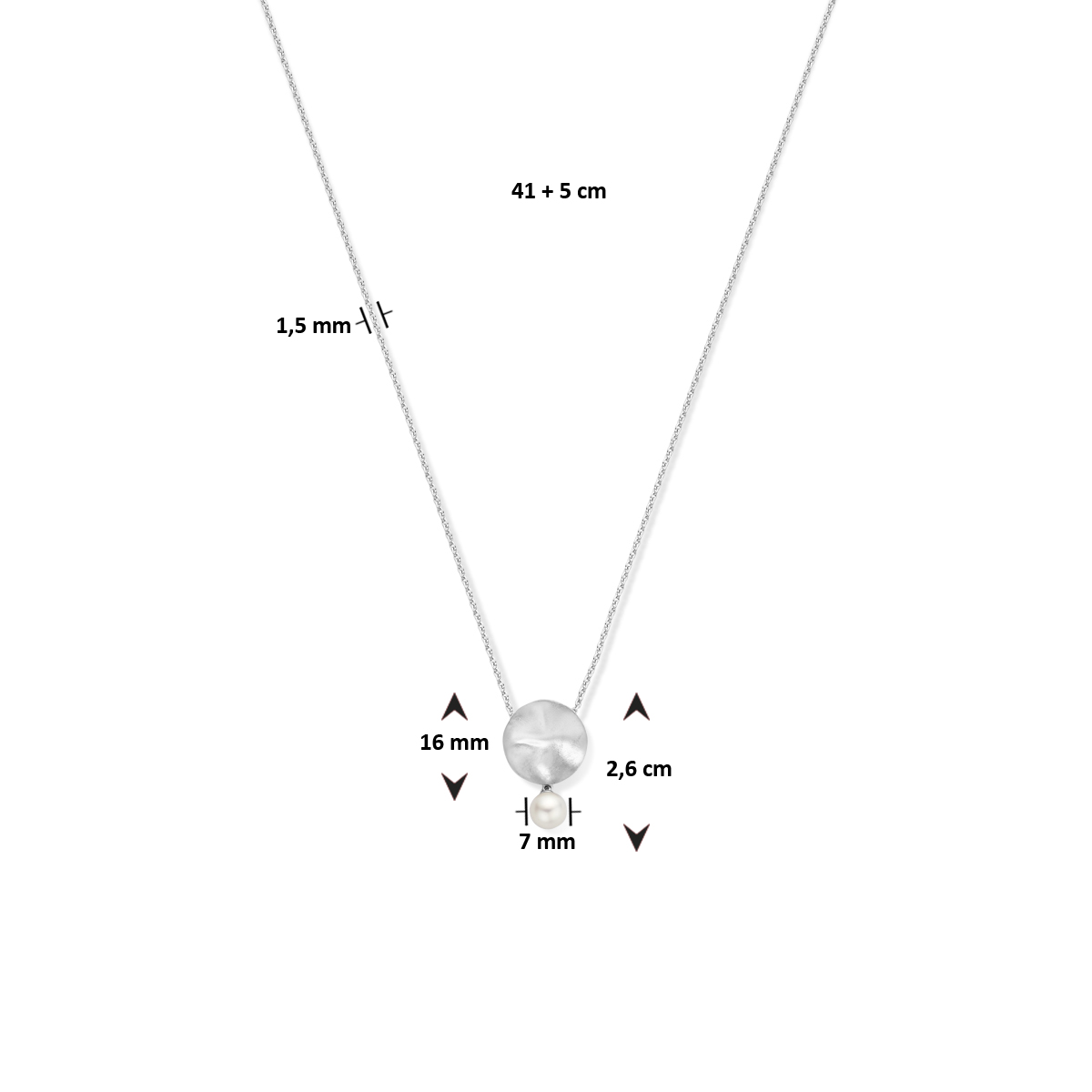 Gerhodineerd 925 zilveren collier uitgevoerd met een zoetwaterparel en een karabijn sluiting. Het collier heeft een draaglengte van 41cm en een extensie van 5cm. De schakelbreedte is 1.5mm.
