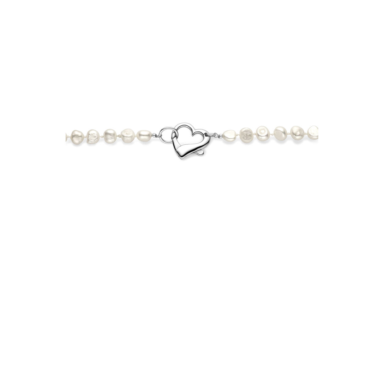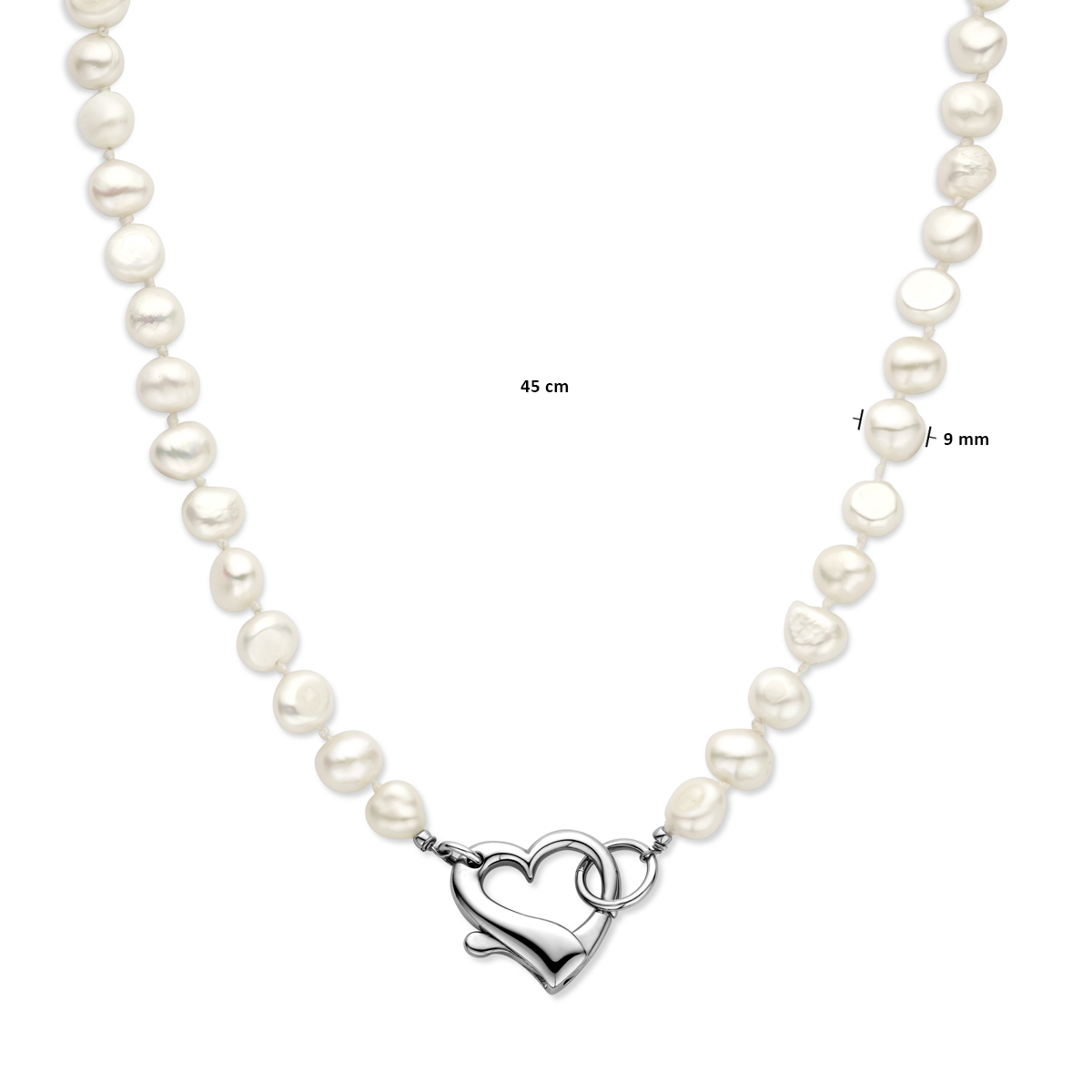 Gerhodineerd 925 zilveren collier uitgevoerd met parels en een hart slot. Het collier heeft een draaglengte van 45cm.