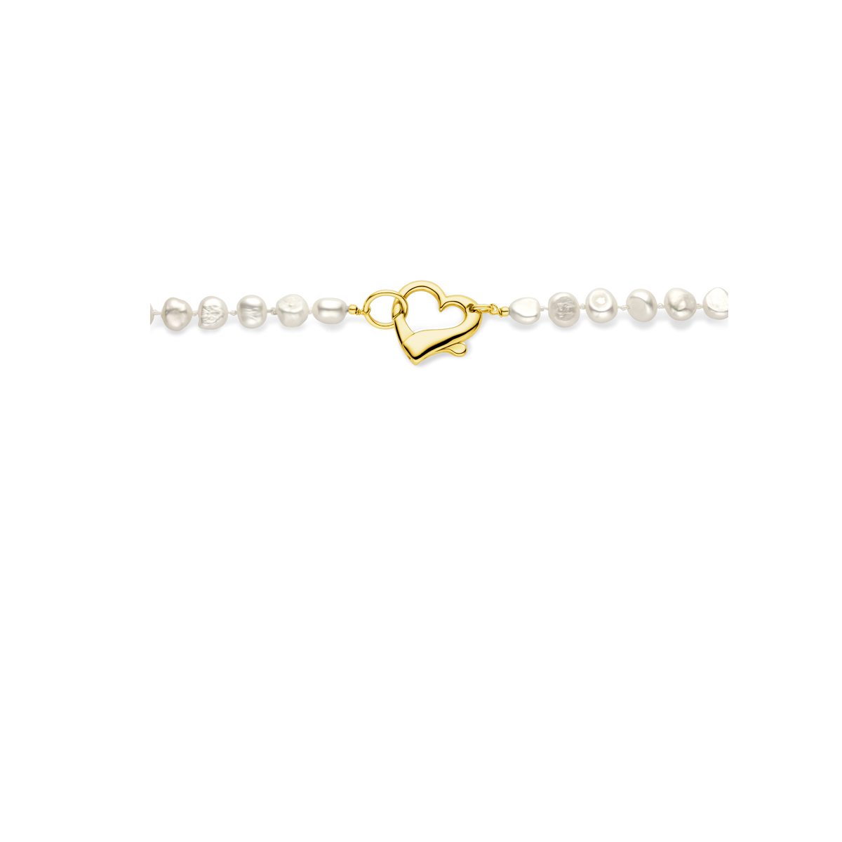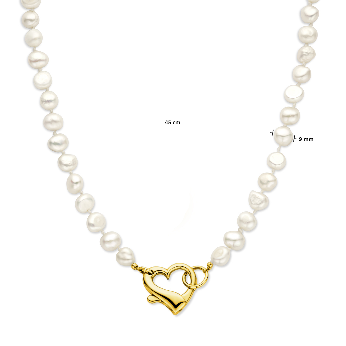 Verguld op 925 zilveren collier uitgevoerd met parels en een hart slot. Het collier heeft een draaglengte van 45cm.