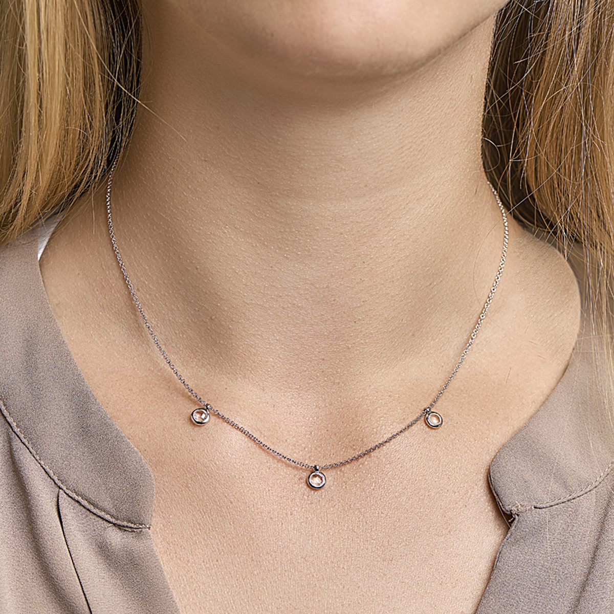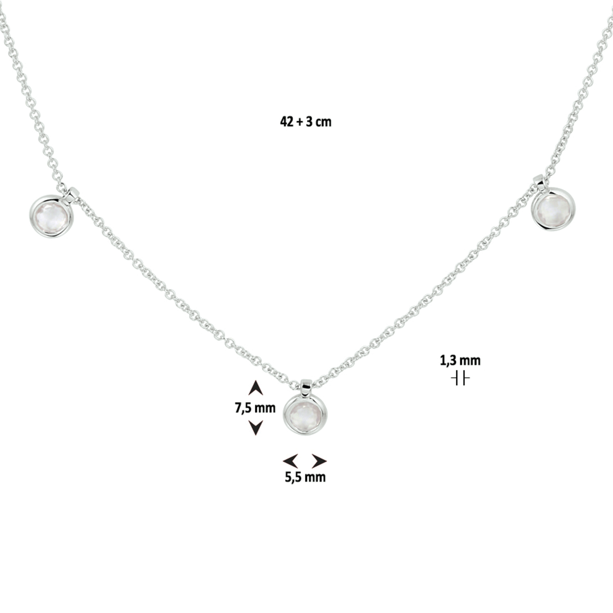 Gerhodineerd 925 zilveren 1.3mm anker collier uitgevoerd met 3 schitterende rozenkwarts stenen en een stevige karabijn sluiting. Het collier heeft een draaglengte van 42cm en een extensie van 3cm.