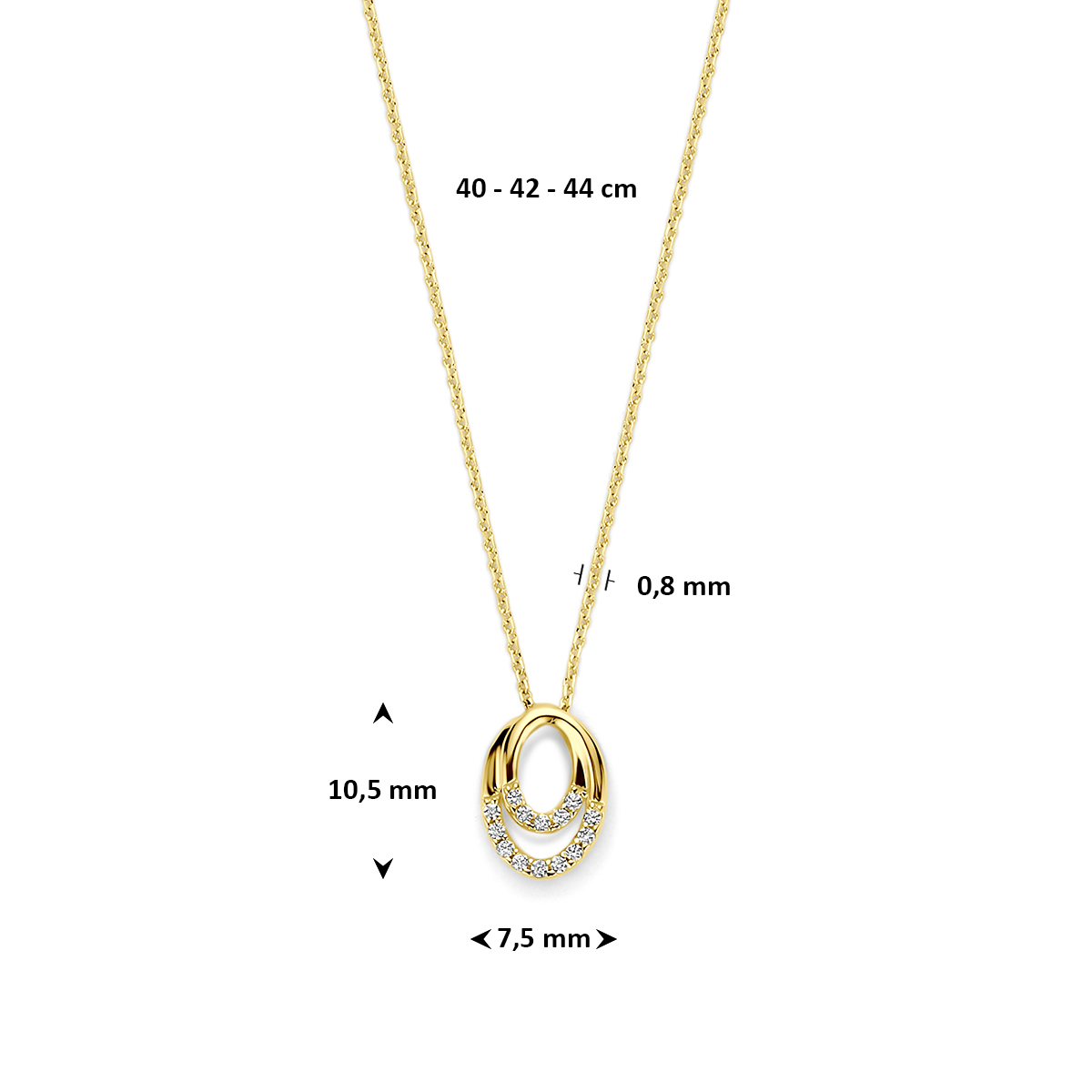 14k Geelgouden collier uitgevoerd met zirkonia. Het collier heeft een draaglengte van 40-42-44cm.