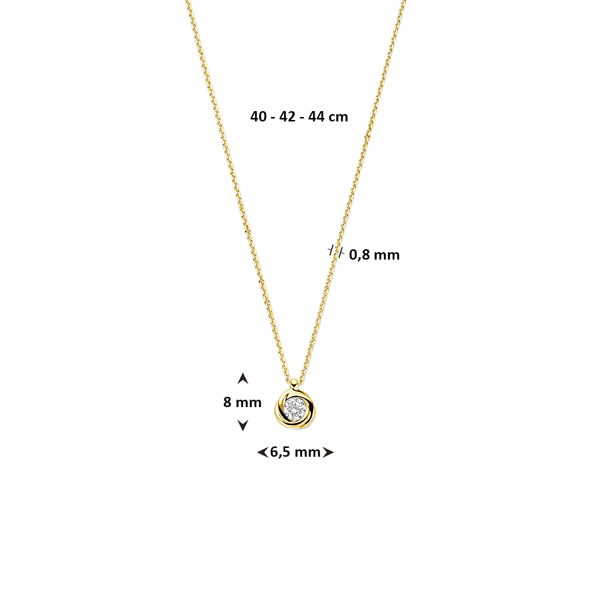 14k Geelgouden collier uitgevoerd met zirkonia. Het collier heeft draaglengtes van40-42-44cm.