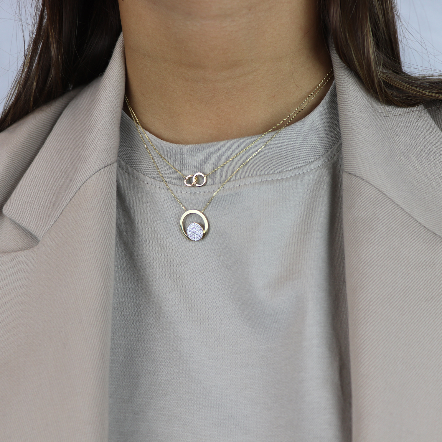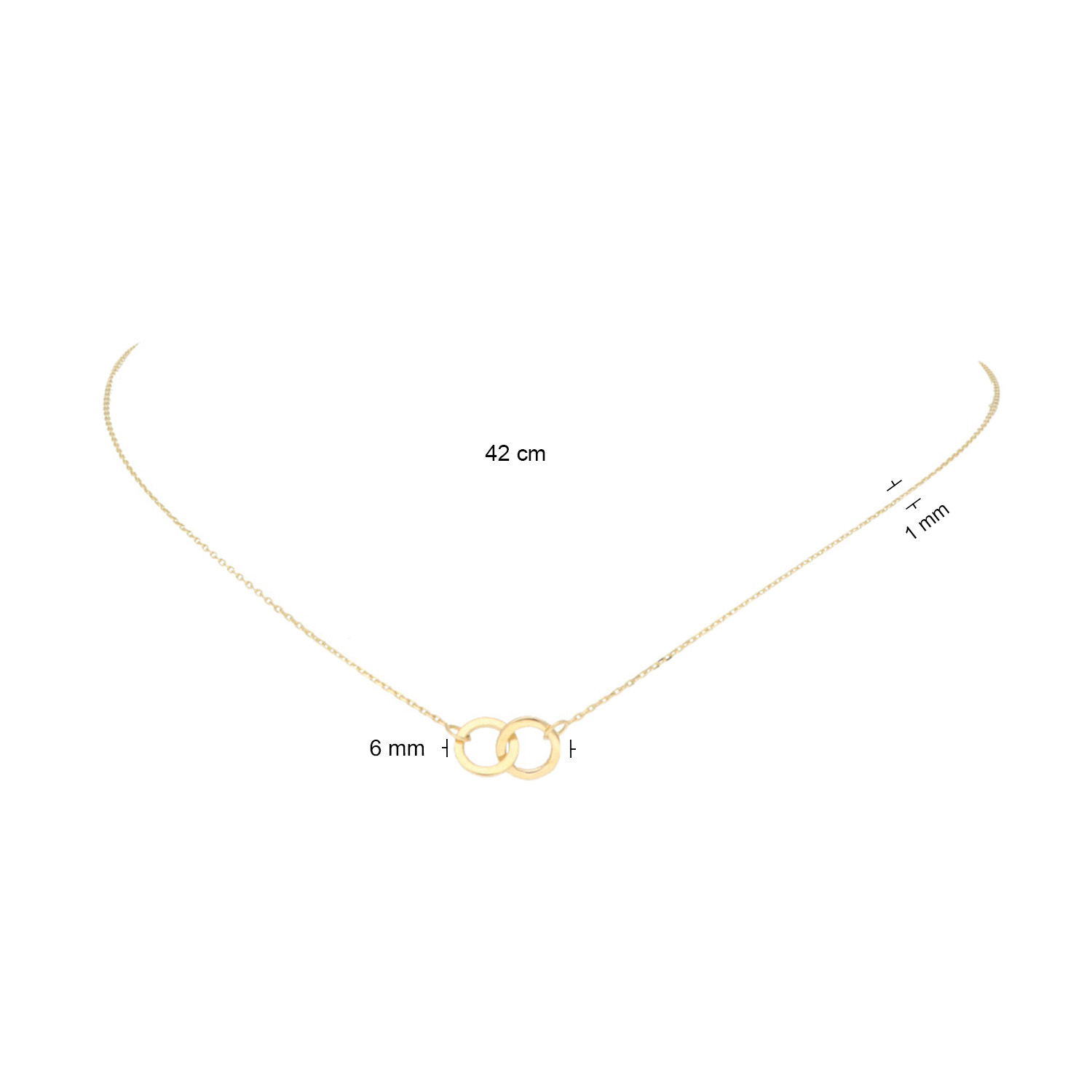 Dit prachtig collier van Glow geeft een extra dimensie aan je outfit! Het collier is gemaakt van 14 karaat goud en bestaat uit twee prachtige in elkaar verweven cirkels. Met welke andere sieraden combineer jij dit prachtige collier?