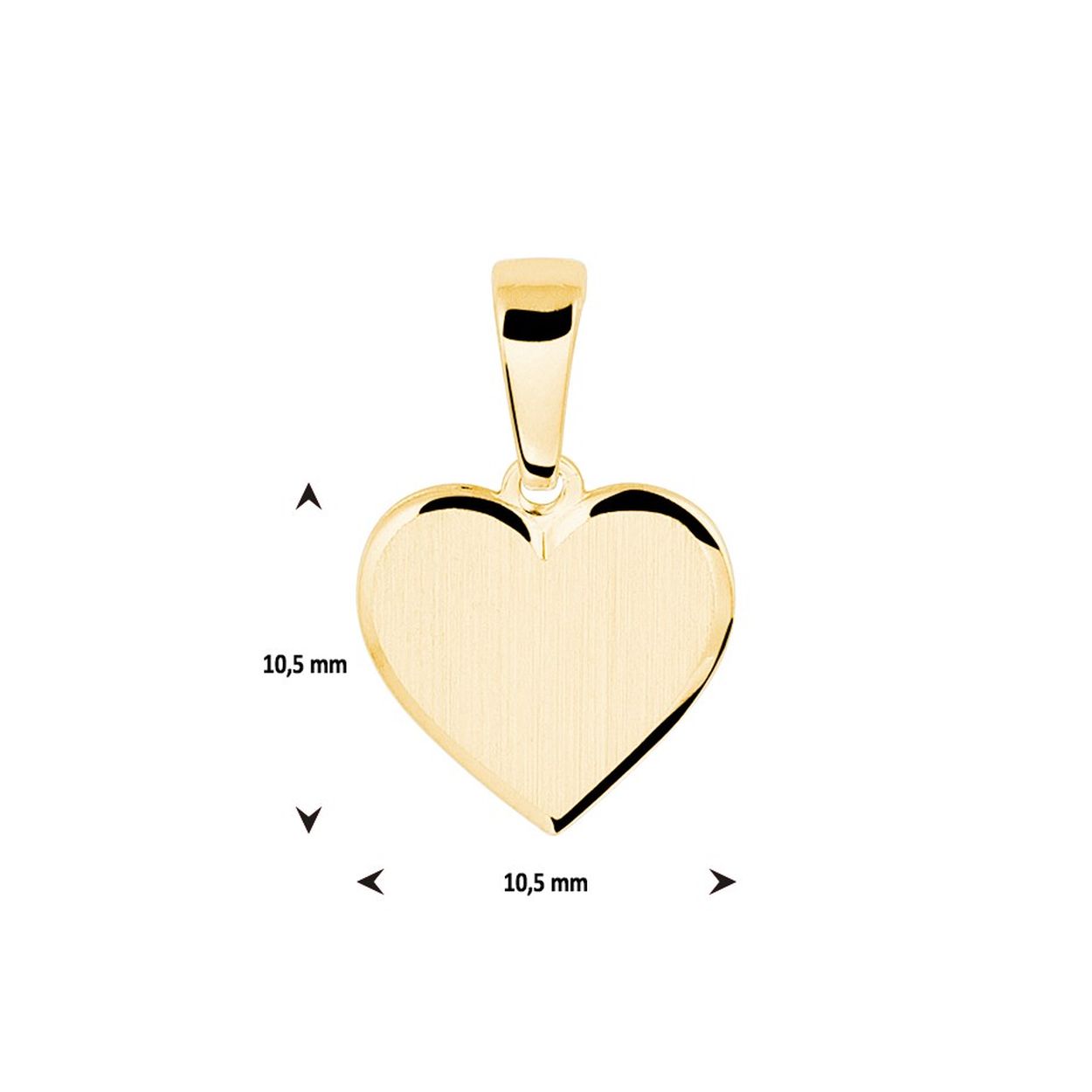 14k Geelgouden graveerhanger in de vorm van een hartje met een afmeting van 10.5x10.5mm. Een perfect kado voor je geliefde of dierbare. Gegarandeerd dat ze het hart kan waarderen. Tip: Combineer de hanger met een collier uit onze collectie.