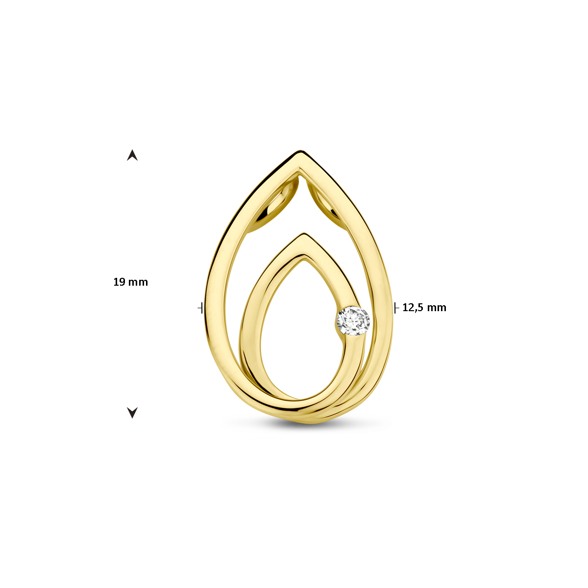 14k Geelgouden hanger uitgevoerd met diamant. De hanger heeft een afmeting van 19x12.5mm.