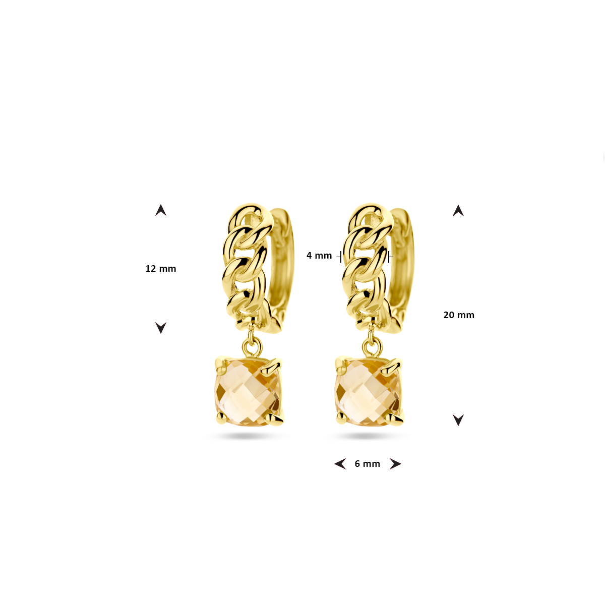 14k Geelgouden klapoorringen met schakelmotief, uitgevoerd met een citrine hanger. De klapoorring heeft een diameter van 12mm en een breedte van 4mm.