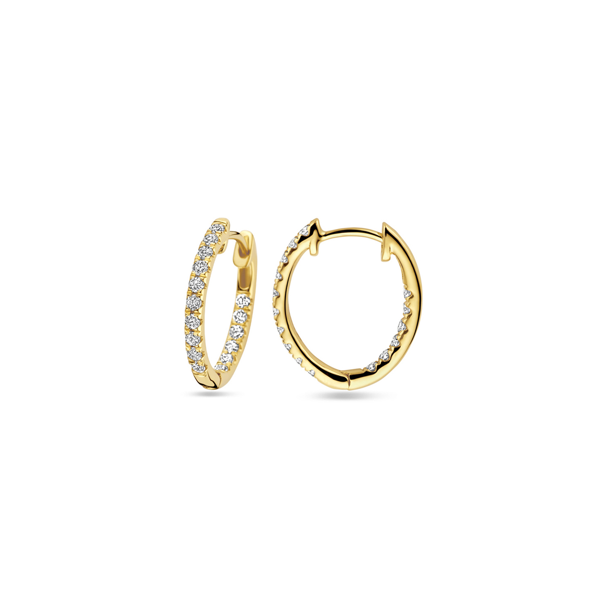 14k Geelgouden klapoorringen uitgevoerd met lab grown diamant. De klapoorringen hebben een afmeting van 16.5x2mm. De totale diamantgewicht is 0.46ct.