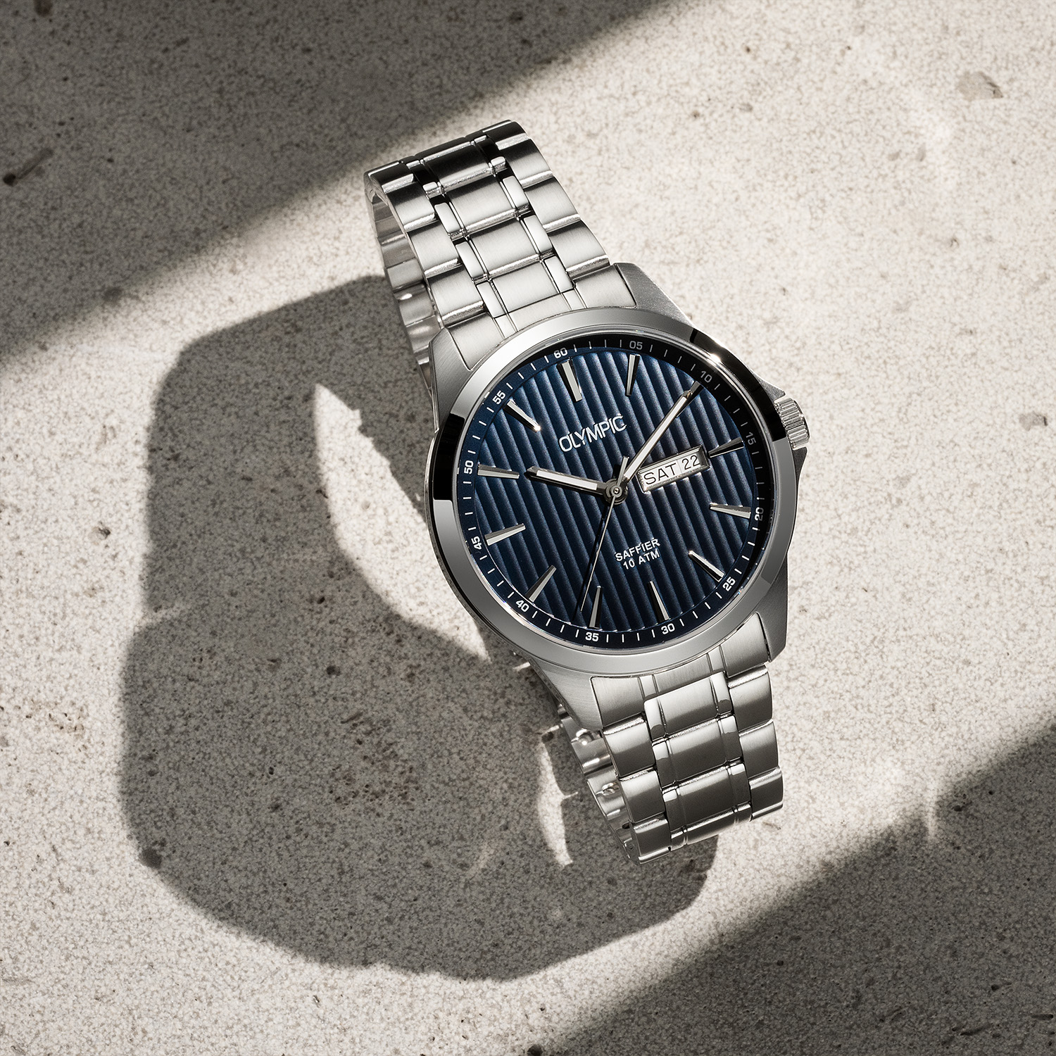 Dit unieke Olympic horloge met artikelnummer: OL26HSS312 is een klassiek horloge. De ronde stalen kast heeft een gladde bezel en een blauwe wijzerplaat met een dag,- en datum aanduiding. Aan de kast zit een stalen schakelband met een vouwsluiting. Het horloge heeft een saffierglas een doorsnee van 41mm en is 10ATM.