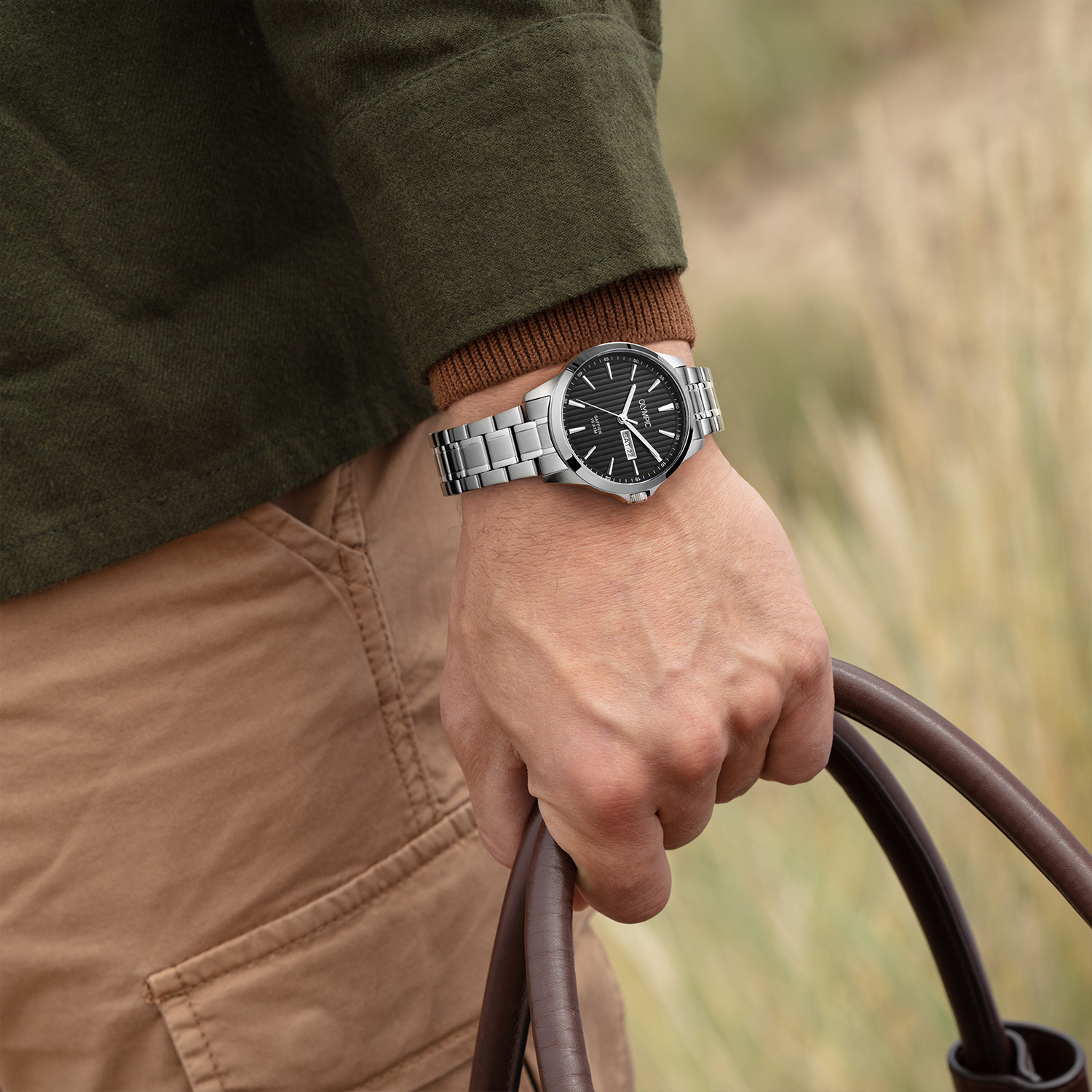 Dit unieke Olympic horloge met artikelnummer: OL26HSS313 is een klassiek horloge. De ronde stalen kast heeft een gladde bezel en een zwarte wijzerplaat met een dag,- en datum aanduiding. Aan de kast zit een stalen schakelband met een vouwsluiting. Het horloge heeft een saffierglas een doorsnee van 41mm en is 10ATM.