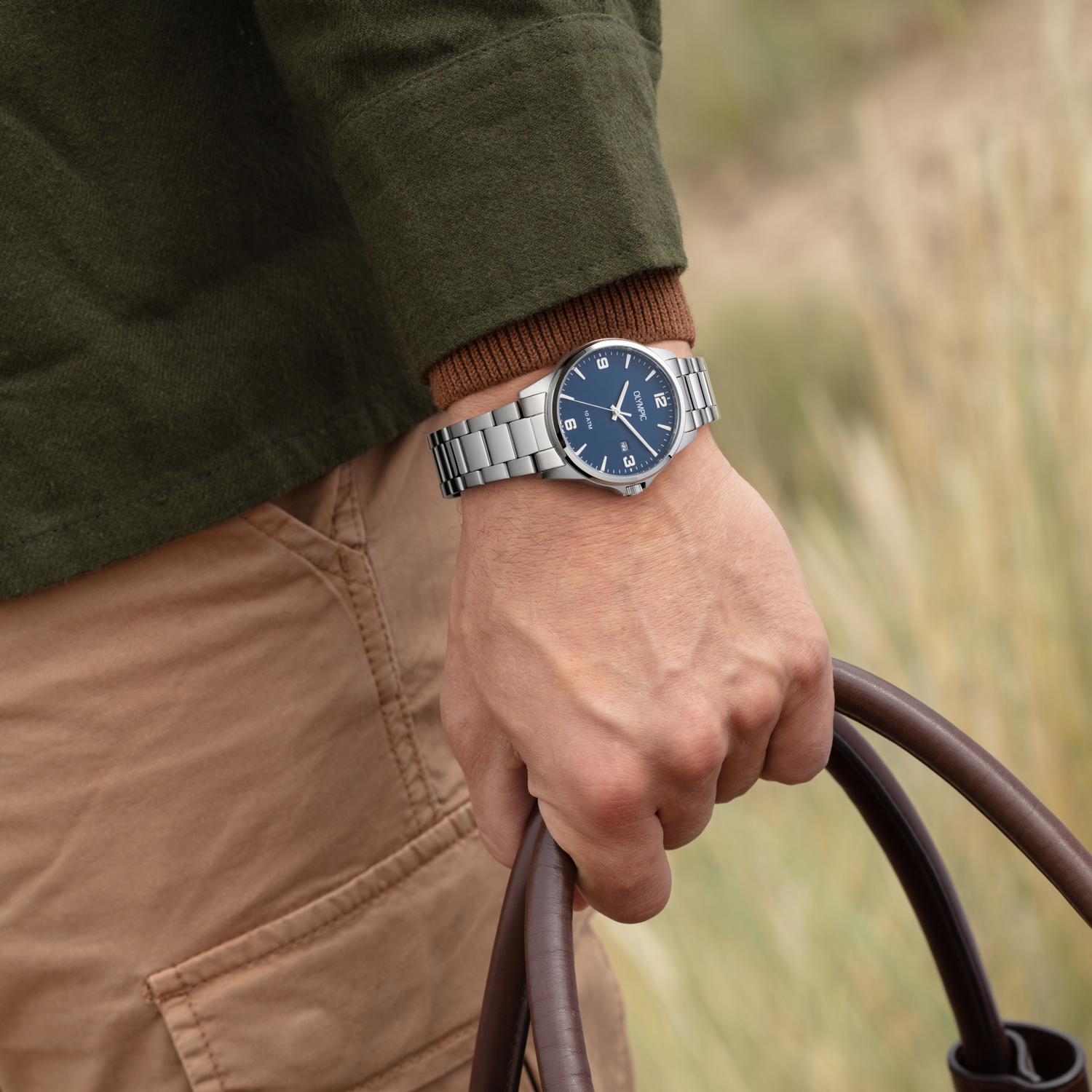 Dit unieke Olympic horloge met artikelnummer: OL26HSS316 is een klassiek horloge. De ronde stalen kast heeft een gladde bezel en een blauwe wijzerplaat met een datum aanduiding. Aan de kast zit een stalen schakelband met een vouwsluiting. Het horloge heeft een mineraalglas een doorsnee van 40mm en is 10ATM.