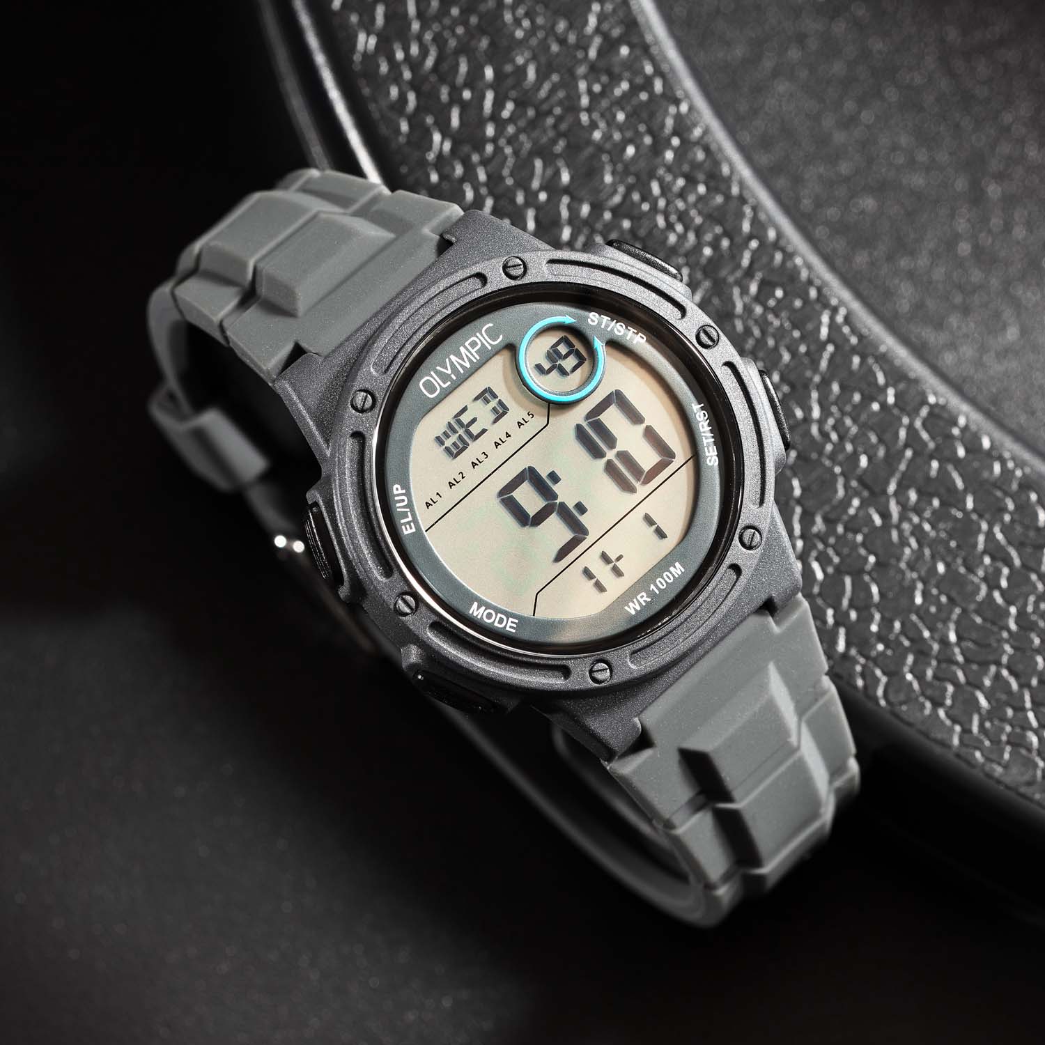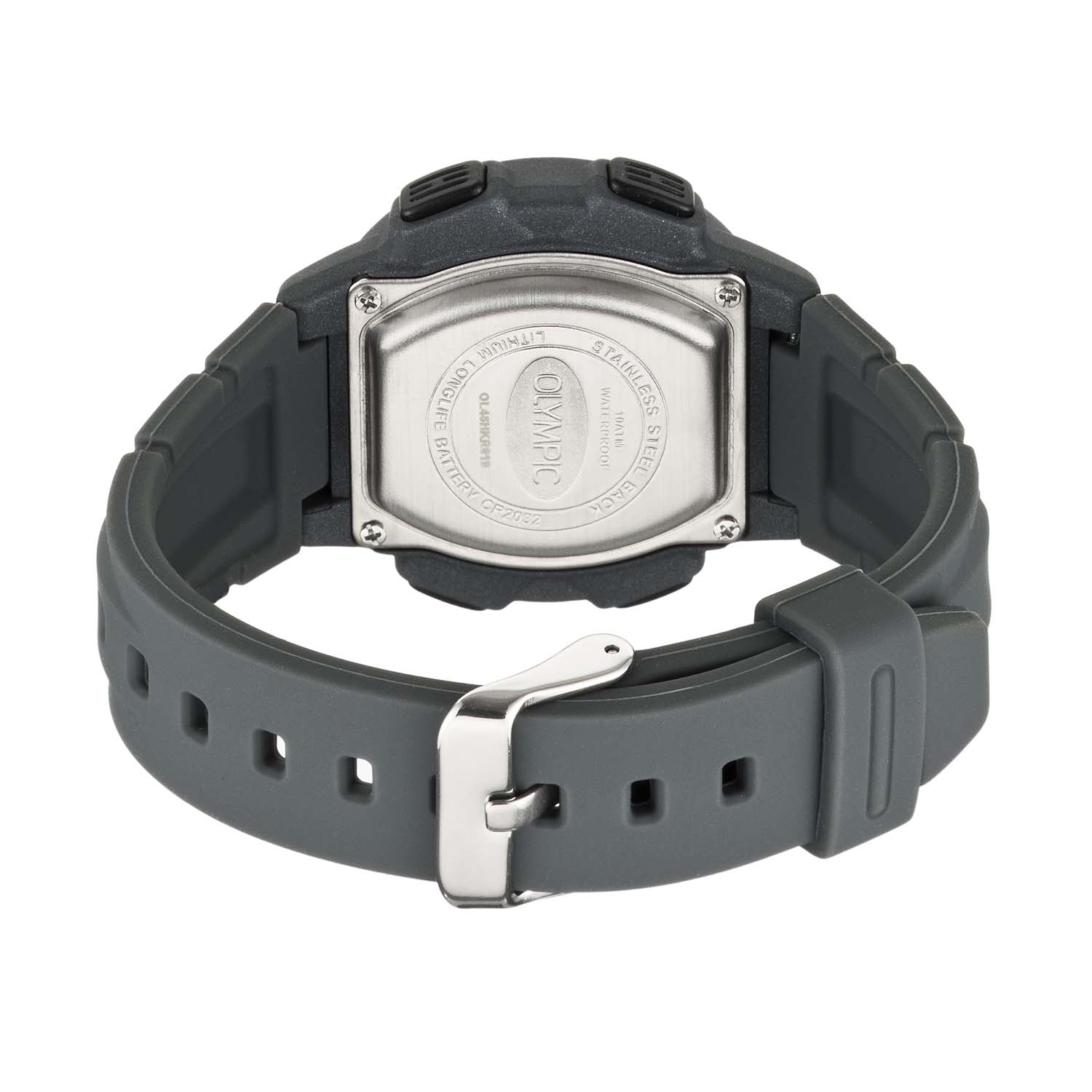 Olympic OL45HKR019 Digital Horloge Kids Grijs 40mm Dit unieke Olympic horloge met artikelnummer: OL45HKR019 is een digitaal kinder horloge met een sportieve uitstraling. De kunststof kast heeft 4 drukknoppen waarmee je de verschillende functies kan bedienen. De horloges zijn in verschillende kleur samenstellingen en verschillende grootte te krijgen. Het horloge heeft tijd,- datum,- dag,- aanduiding. Ook heeft het een timer, alarm en stopwatch functie. Dit geeft het horloge vele mogelijkheden. Aan de kast zit een gelijk gekleurde siliconen band met een gespsluiting. Het horloge heeft een kunststofglas, een doorsnee van 40mm en is 10ATM. Waterdichtheid 10ATM Dit horloge is bestand tegen water bij het zwemmen en douchen. Dit horloge is niet bestand tegen (grote) waterdruk dus je kunt er niet mee duiken. Het merk: Het Nederlandse horlogemerk Olympic levert stoere chronografen, slimline series, digitale uurwerken en elegante dameshorloges. De prijs-kwaliteitverhouding staat bij Olympic hoog in het vaandel met prijzen die uiteenlopen van € 34,95 tot en met € 159,00. 100% Nederlands ontwerp, waterdicht en standaard 3 jaar fabrieksgarantie. Specificaties: - Ronde kast Ø 40mm - Digitaal uurwerk - Siliconen band - Grijs - 10ATM - Standaard 3 jaar fabrieksgarantie - Kunststofglas