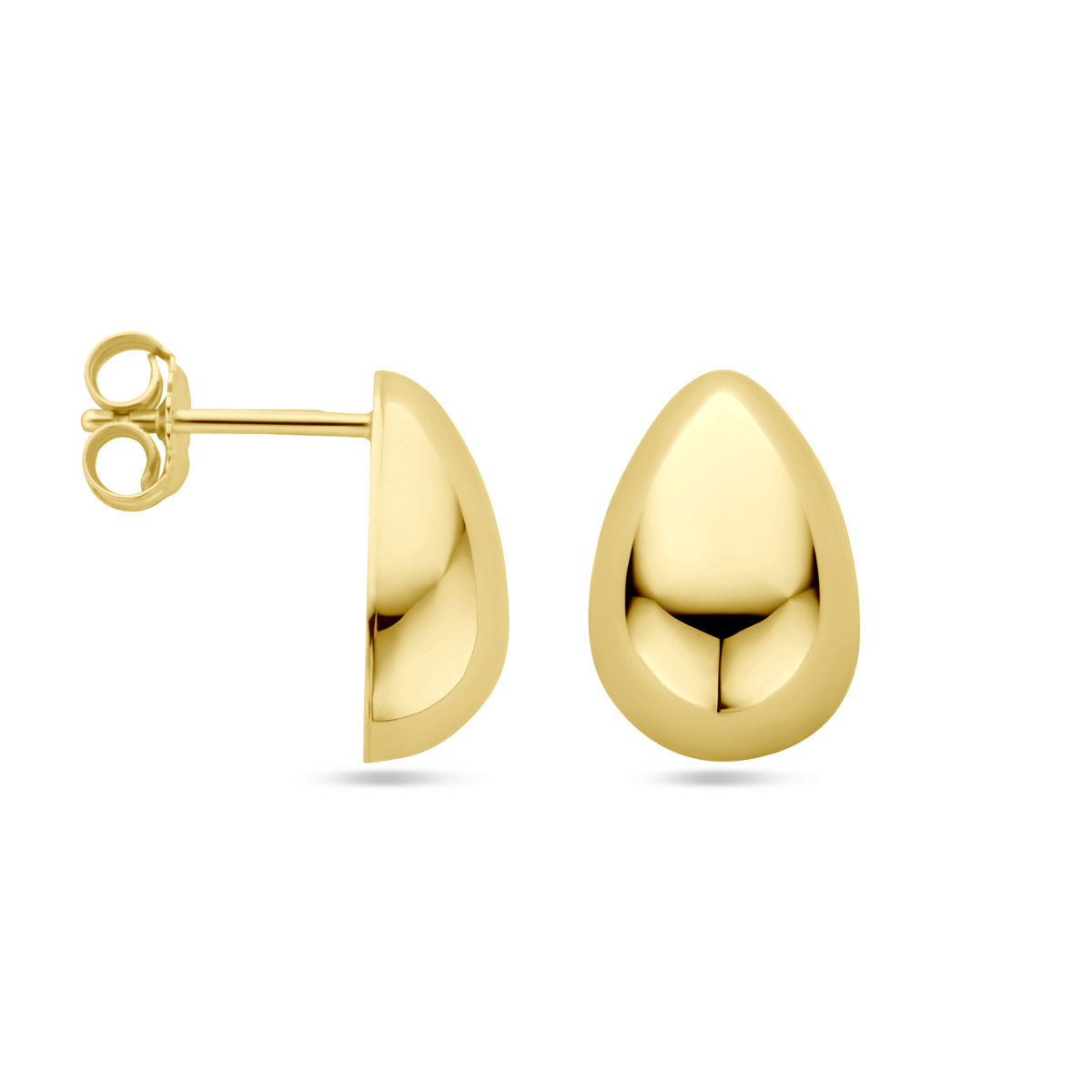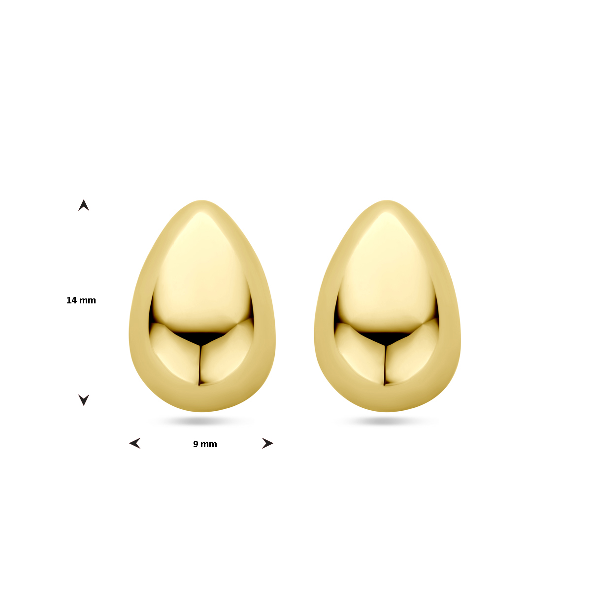 14k Geelgouden oorknoppen uitgevoerd in de vorm van een druppel. De oorknoppen hebben een afmeting van 14x9mm.
