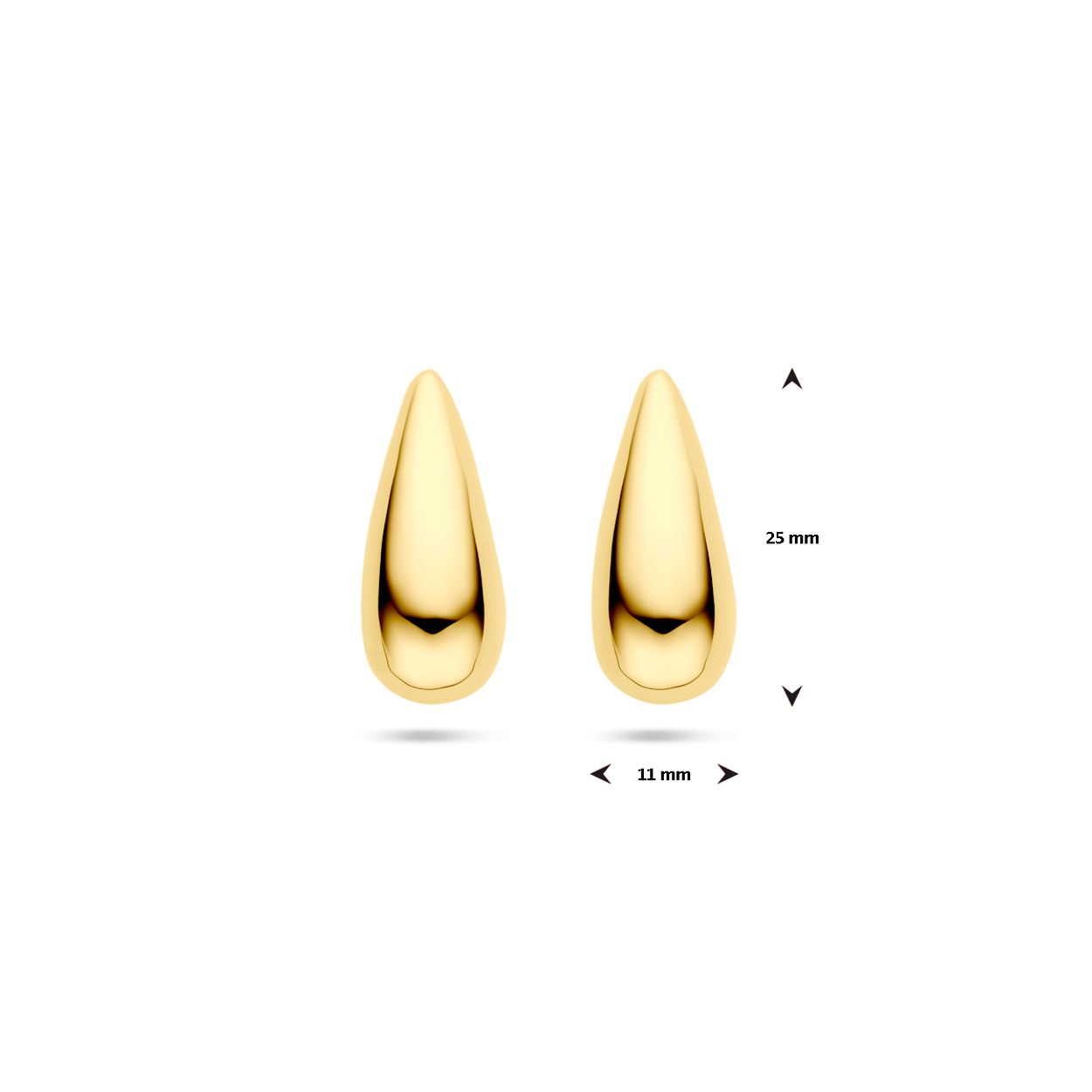 Geelgoud op 925 zilveren oorknoppen uitgevoerd in de vorm van een druppel. De oorknoppen hebben een afmeting van 25 x 11mm. Geen garantie op plating.