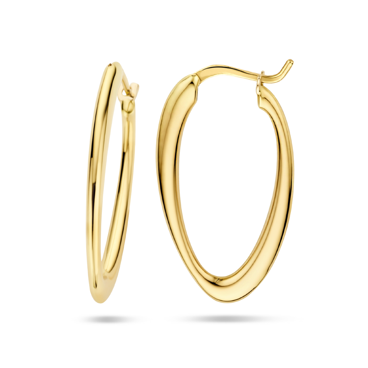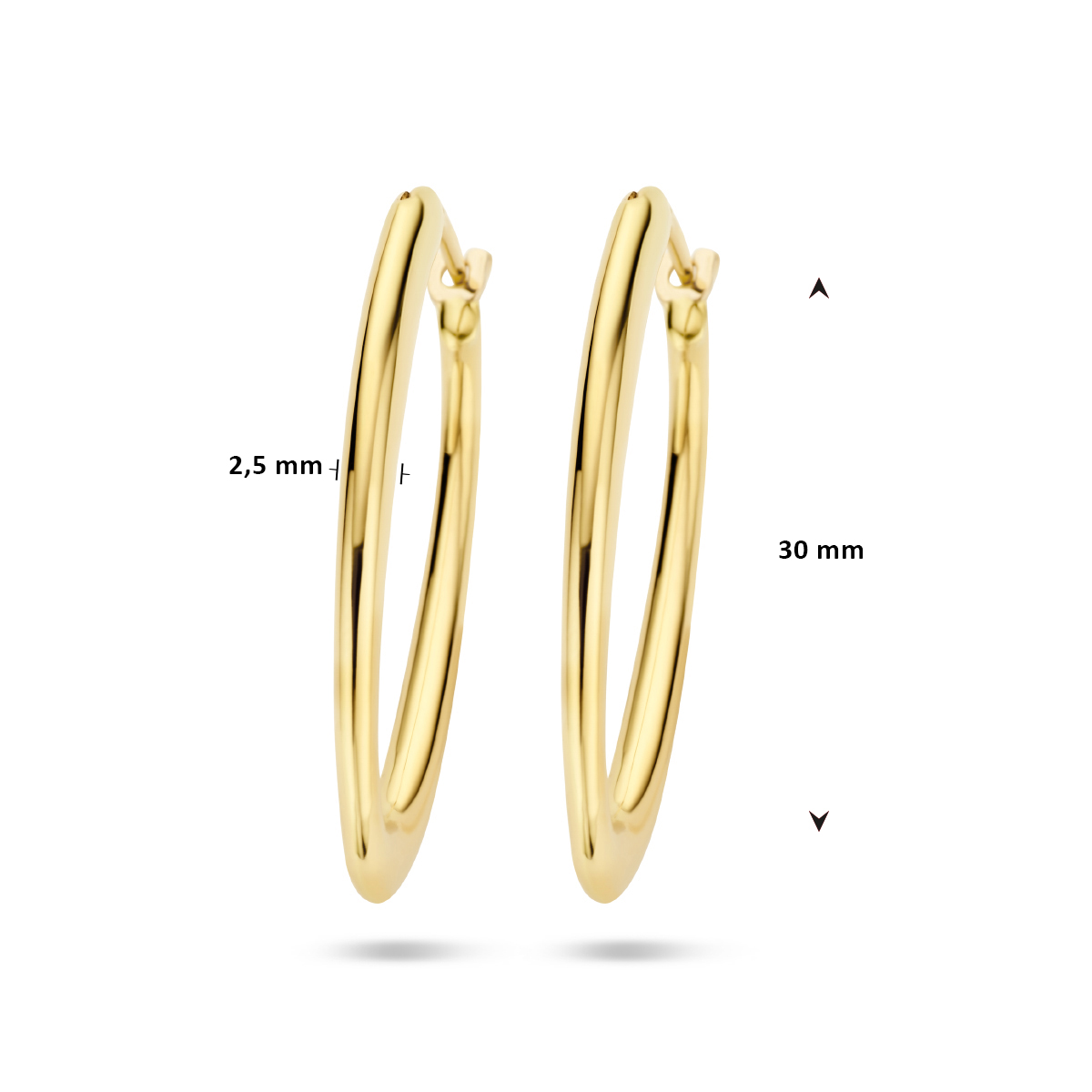 Stijlvolle geelgouden oorringen met een totale hoogte van 30mm. De oorringen zijn een ware eyecatcher en voegen een subtiele hoeveelheid glamour toe aan iedere outfit. Tip: Leuk om kado te geven!