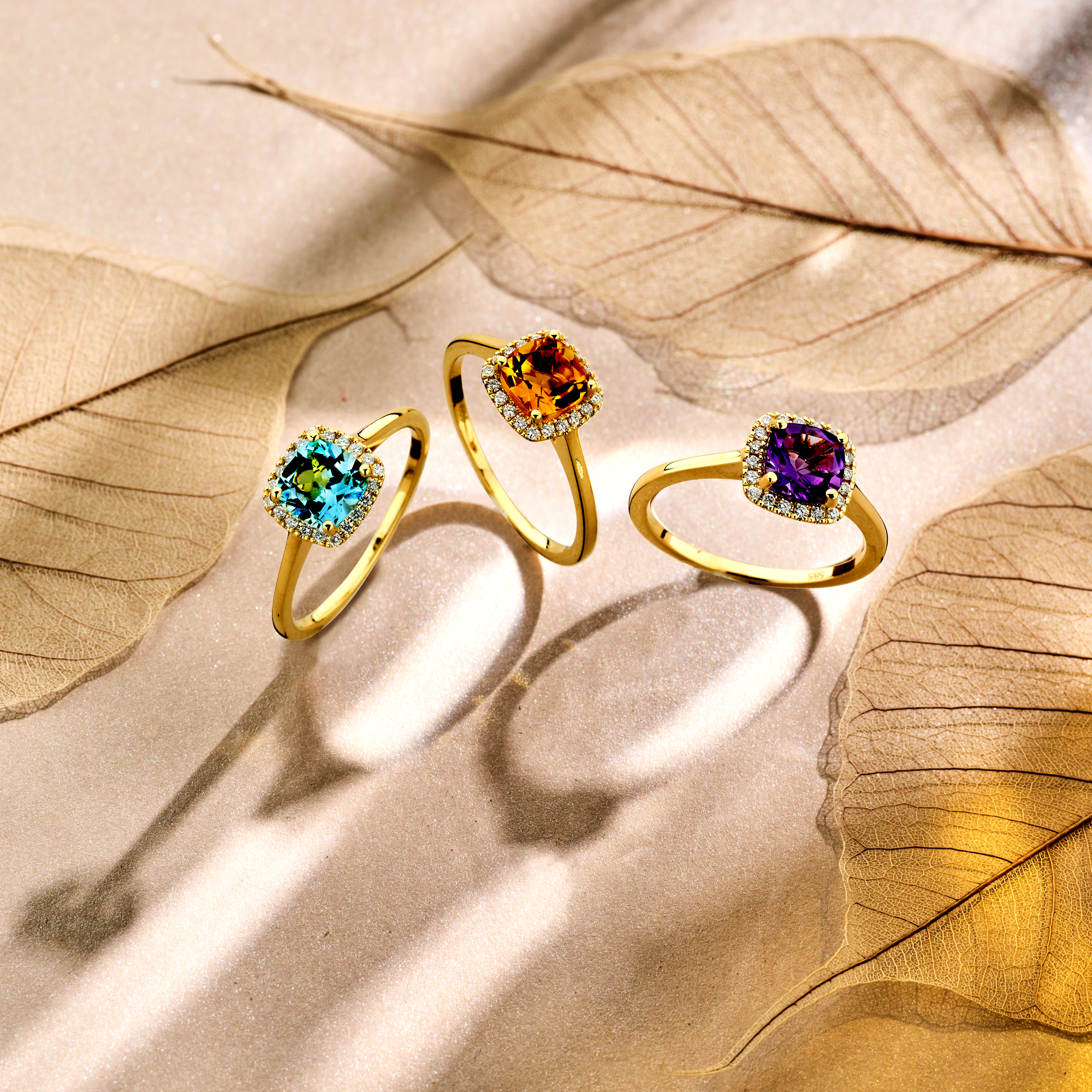 14k Geelgouden ring uitgevoerd met citrien en diamant.