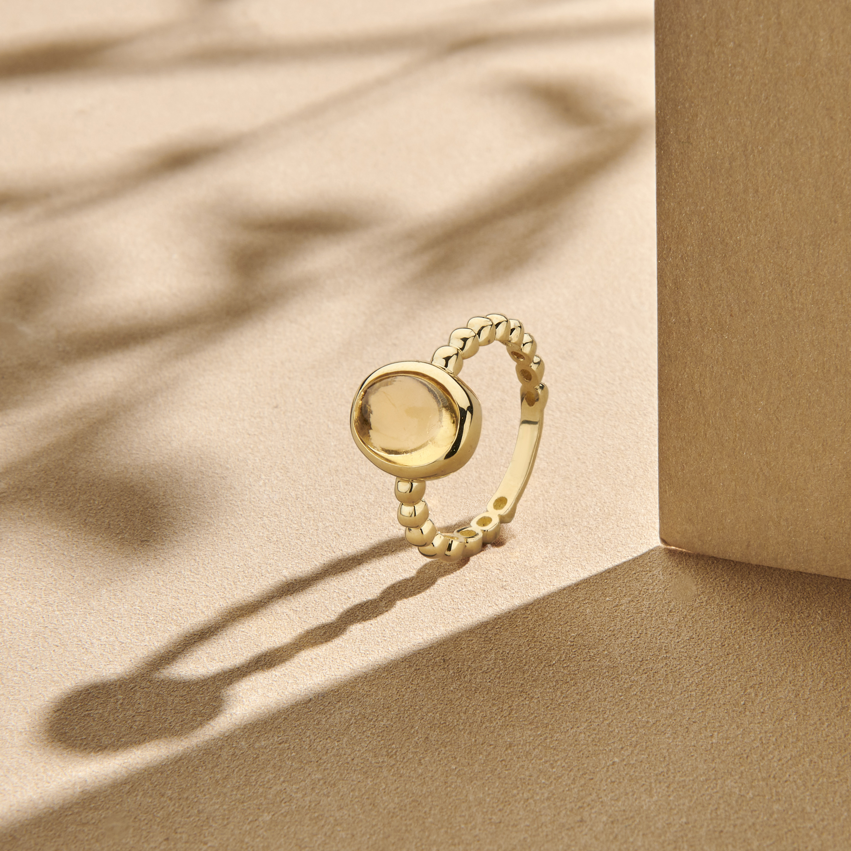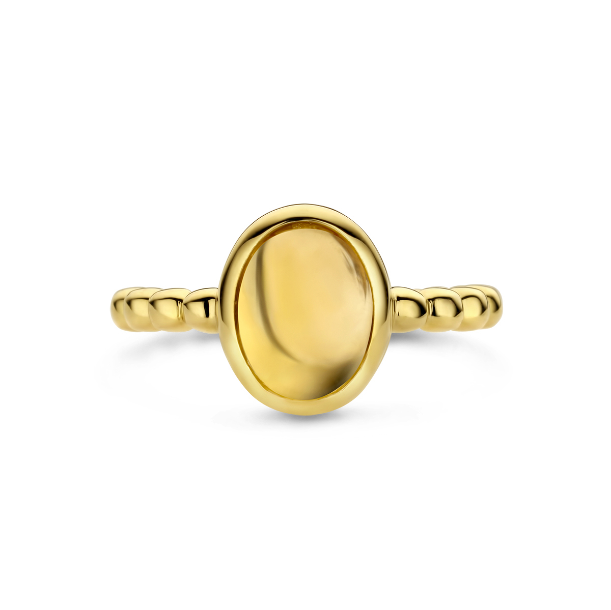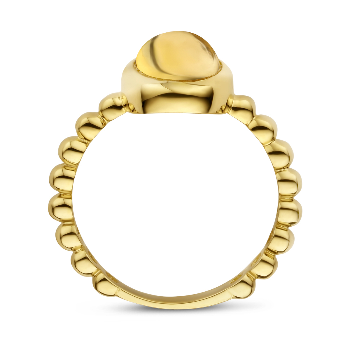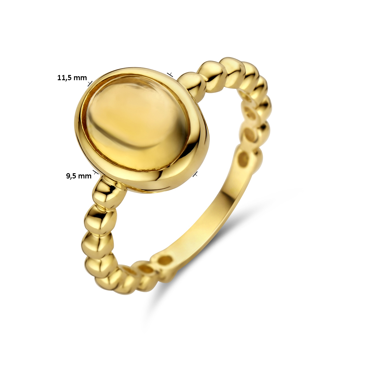 14k Geelgouden ring uitgevoerd met citrien. De ring heeft een breedte van 11.5mm.