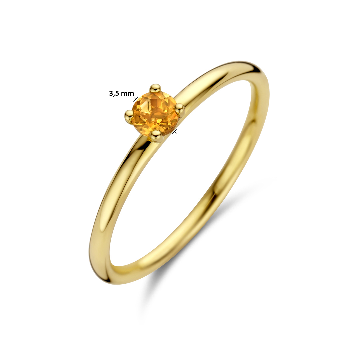 14k Geelgouden ring uitgevoerd met citrien. De ring heeft een breedte van 3.5mm.