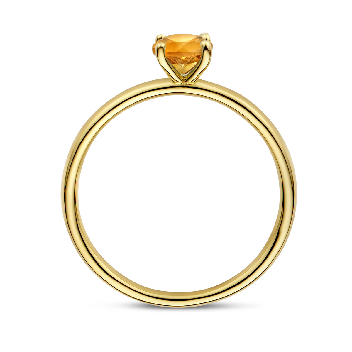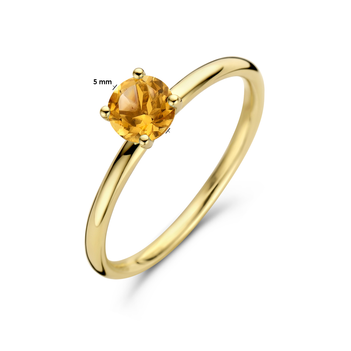 14k Geelgouden ring uitgevoerd met citrien. De ring heeft een breedte van 5mm.