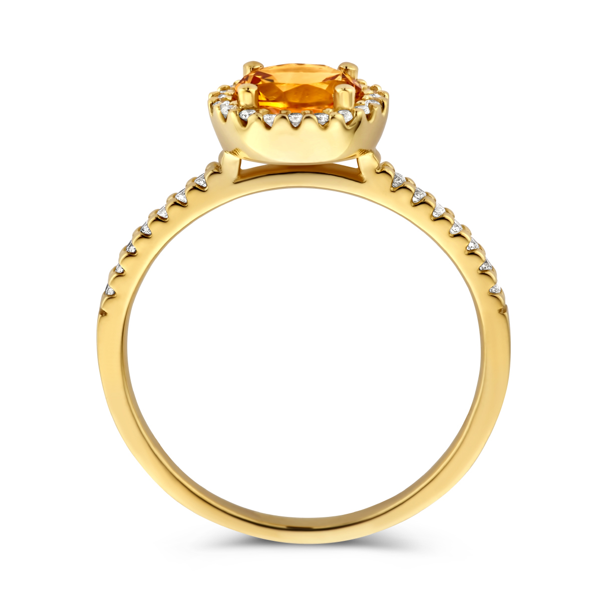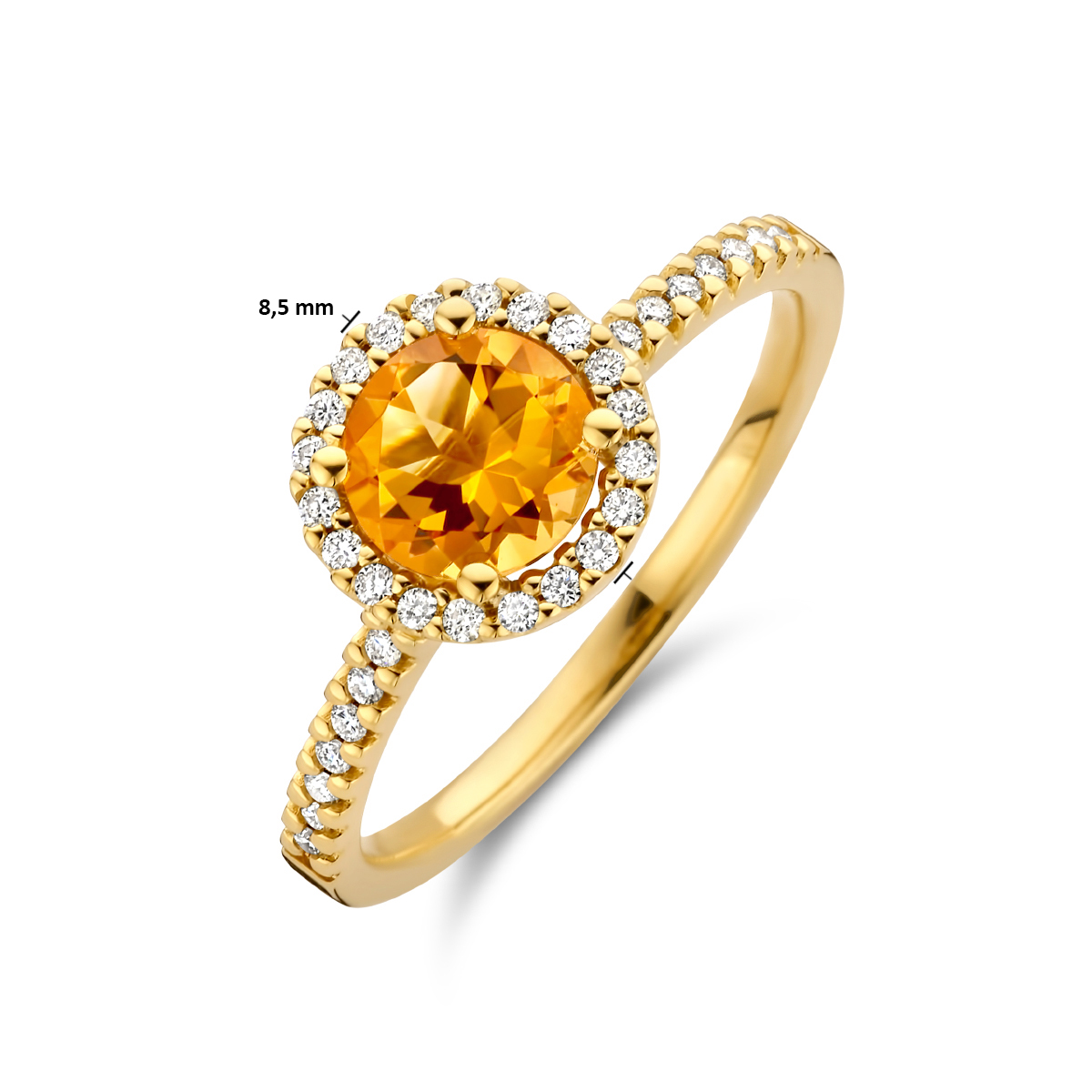 14k Geelgouden ring uitgevoerd met een schitterende citrien en een diamant rij briljant