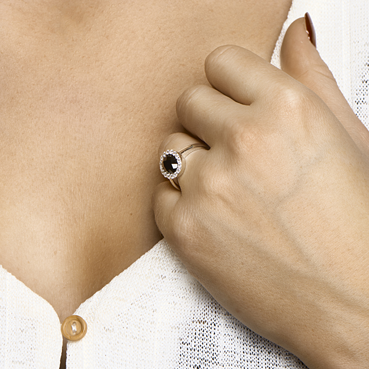 Beschrijving: Chique zilveren ring met een solitaire onyx en een rijzetting van briljant geslepen zirkonia in een chaton zetting. De ring heeft een breedte van 13mm. Deze ring is te combiren met bijpassende sieraden uit onze collectie zodat u een stijlvolle set kunt samenstellen.