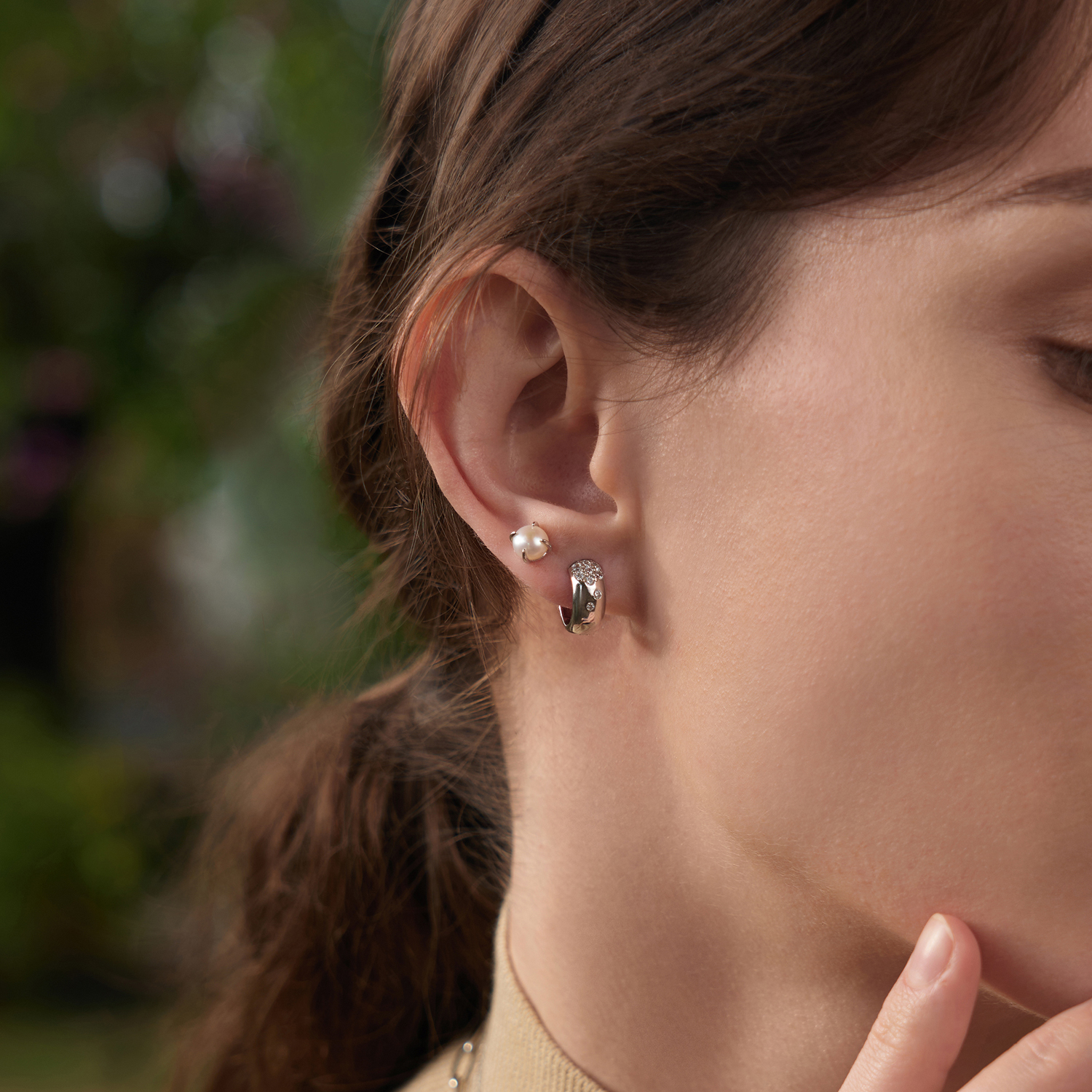 Een must voor elke trendy sieradencollectie, ontdek onze frisse kijk op dikke gouden oorringen. Gemaakt van gerhodineerde sterlingzilver en afgewerkt met een chique cluster van fonkelende zirkonia's, geven deze opvallende hoops elke look een boost.
