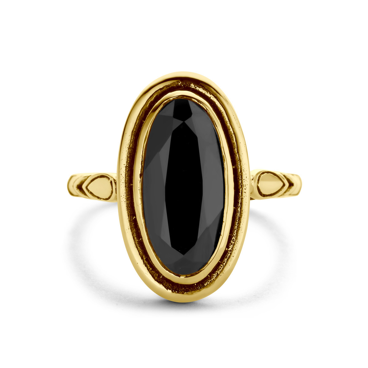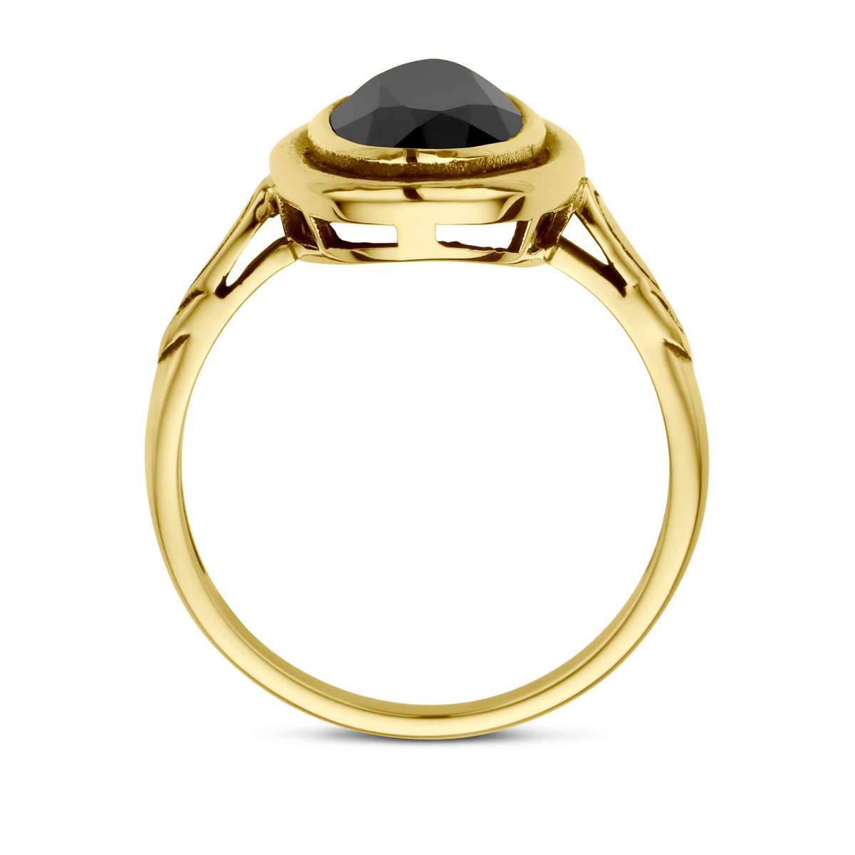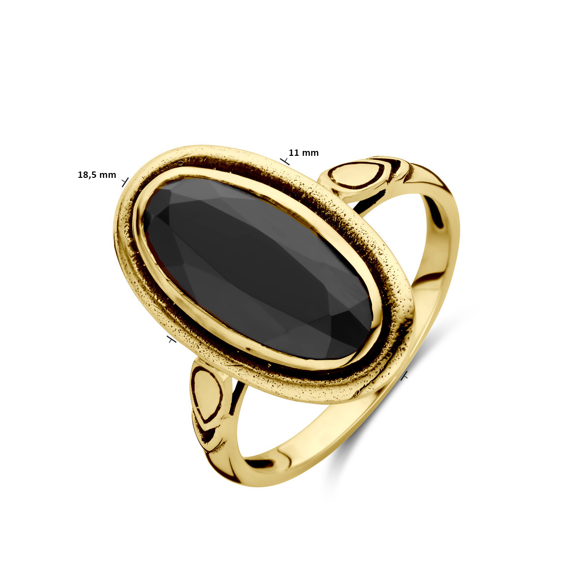 14k Geelgouden vintage ring uitgevoerd met onyx. De ring heeft een afmeting van 18.5x11mm.
