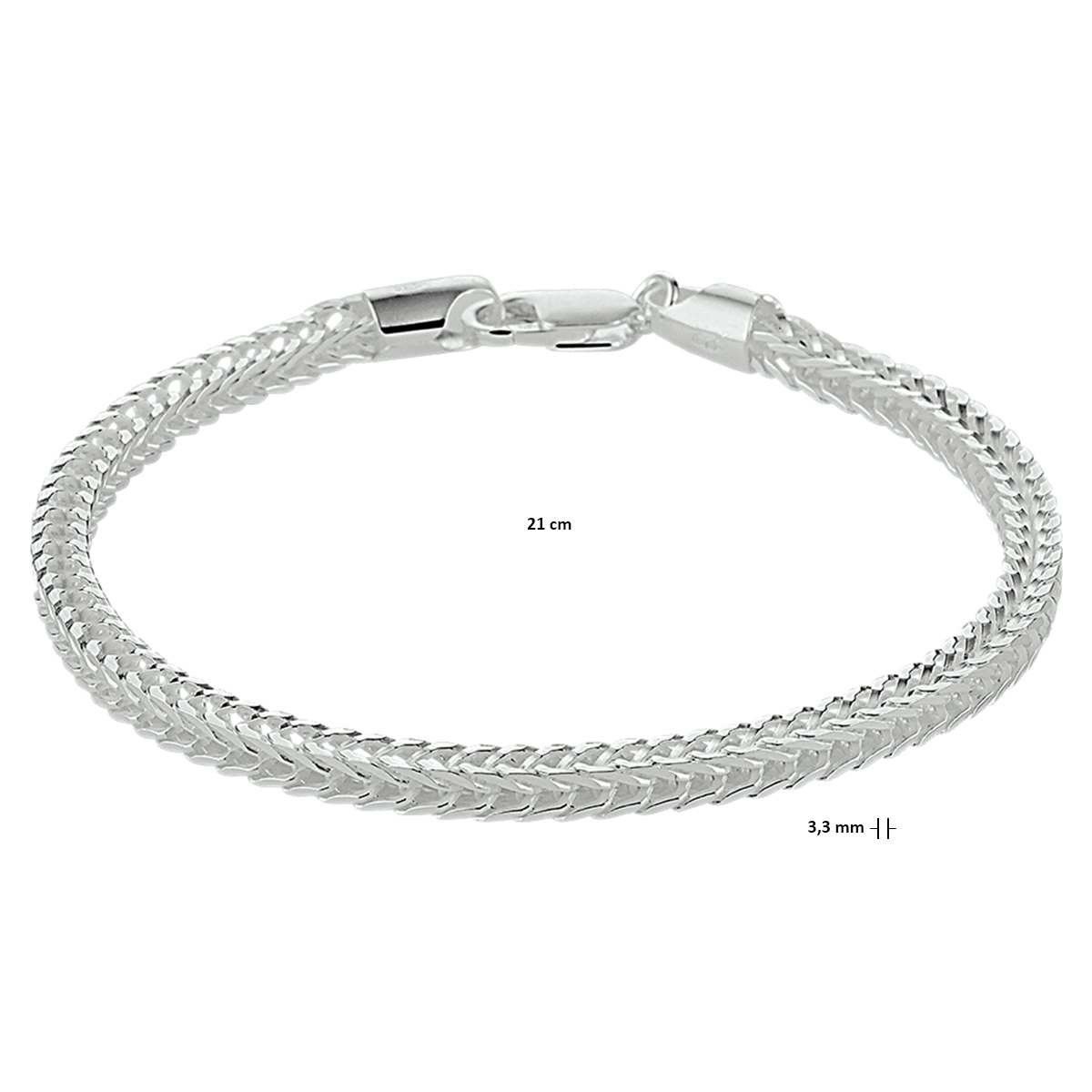 Zilveren lengte artikel met een vossestaart schakel. Het lengte artikel is uitgevoerd met een karabijn sluiting. De schakelbreedte is 3.3mm.