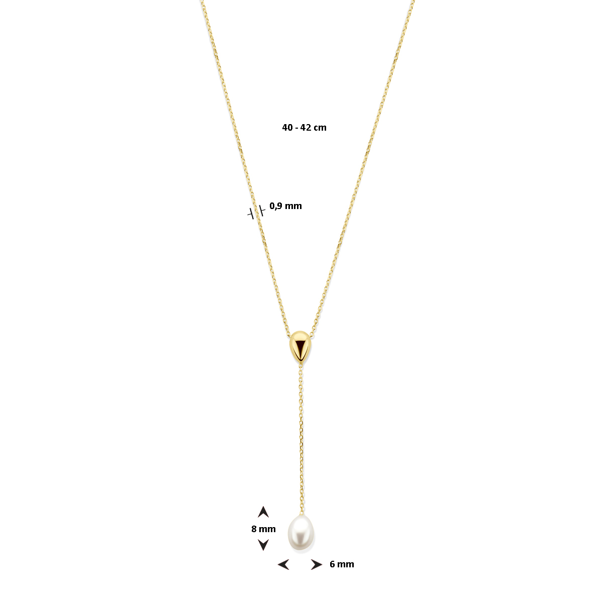 14k Geelgouden Y-collier uitgevoerd met zoetwaterparel. Het collier heeft draaglengtes van 40-42cm.